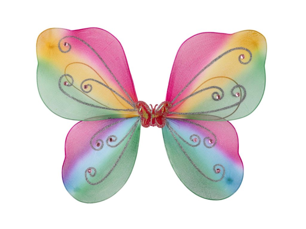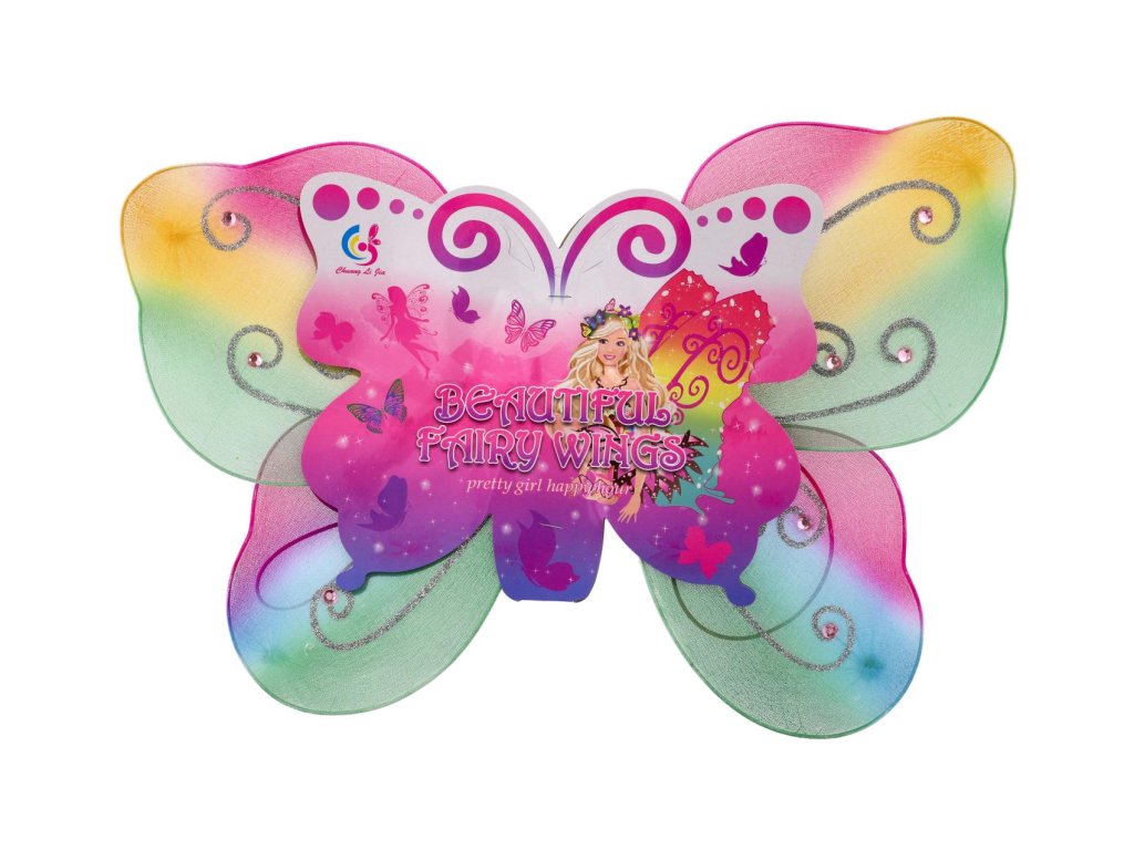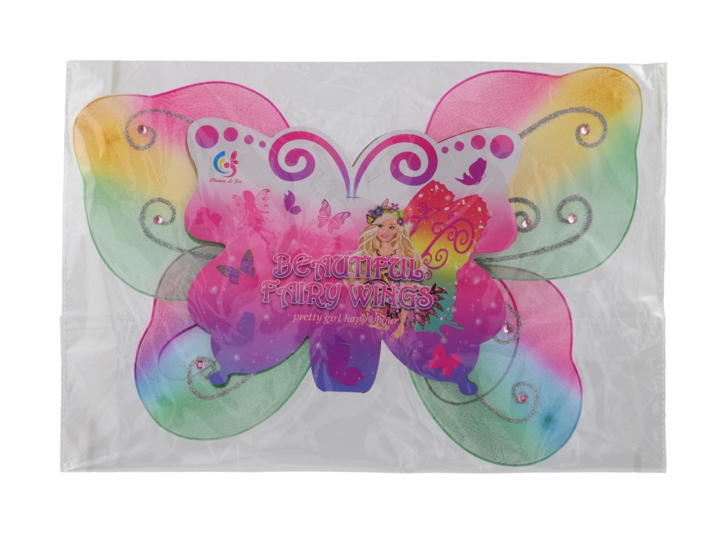 Uchycení gumičkou za ramena. Doplněk kostýmu motýlek, nebo víla.Rozměry balení 44 x 32 x 1 cm.