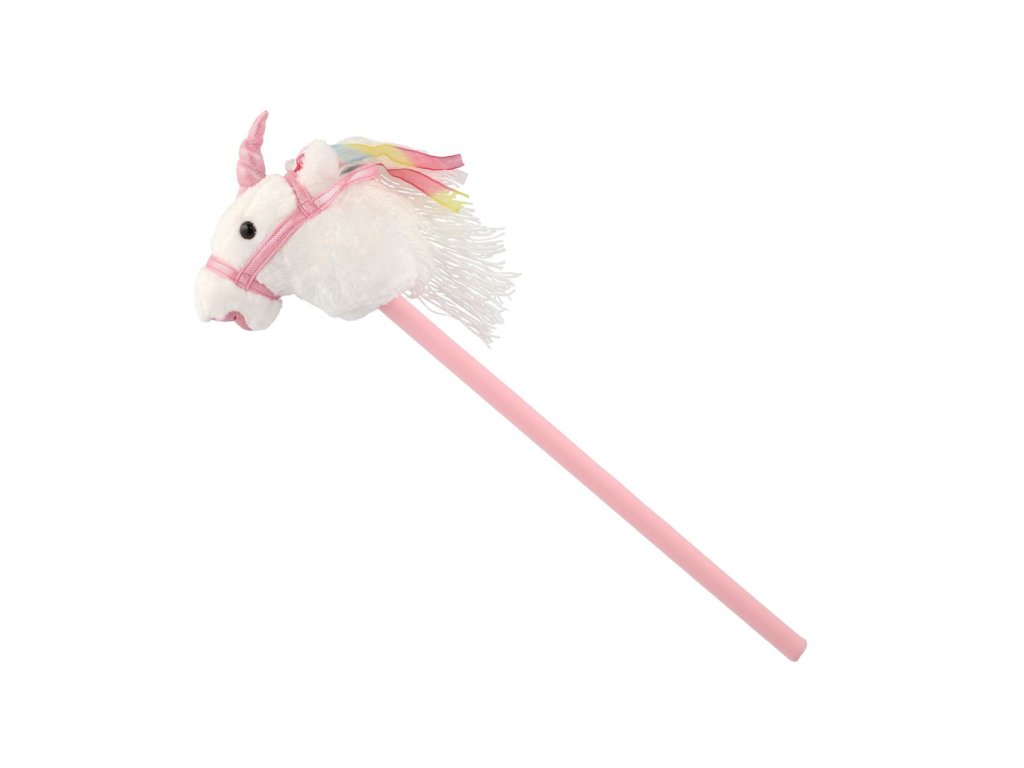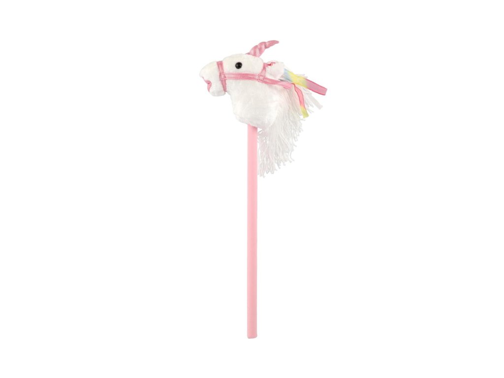 Kůň jednorožec na tyči plyš 80cm na baterie se zvukem bílý v sáčku