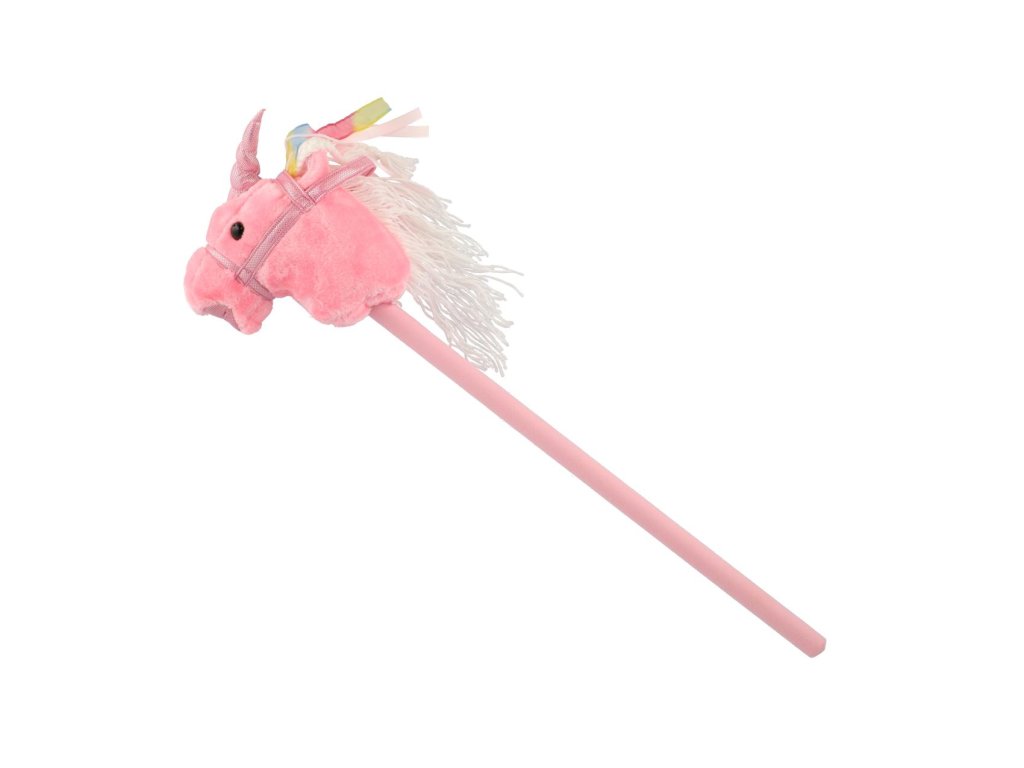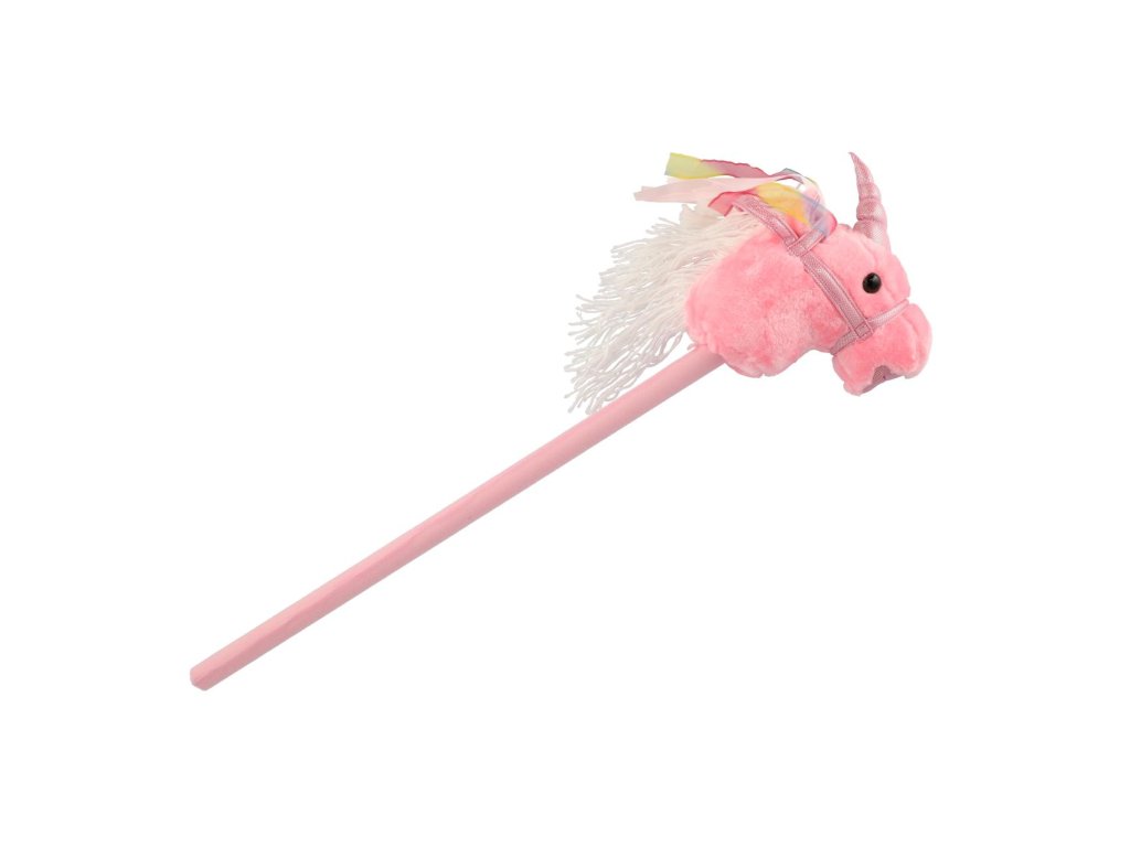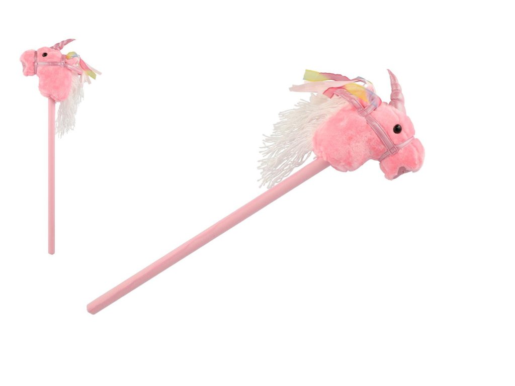 Kůň jednorožec na tyči plyš 80cm na baterie se zvukem růžový v sáčku