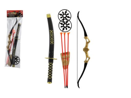 Ninja sada meč s doplňky plast hvězdice 2ks, luk + šípy na přísavku 3ks v sáčku 17x60x5cm