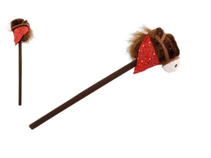 Kůň na tyči plyš 80cm na baterie se zvukem hnědý v sáčku