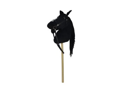 Kůň na tyči plyš 70cm na baterie se zvukem černý v sáčku