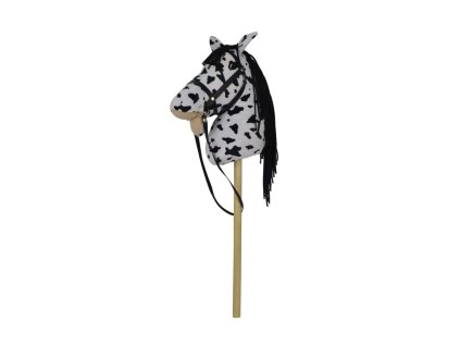 Kůň na tyči plyš 70cm na baterie se zvukem bílo-černý (Appaloosa) v sáčku