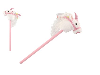 Kůň jednorožec na tyči plyš 80cm na baterie se zvukem bílý v sáčku