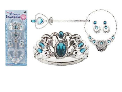 Sada krásy velká plast korunka + náhrdelník + naušnice + žezlo 4ks na kartě
