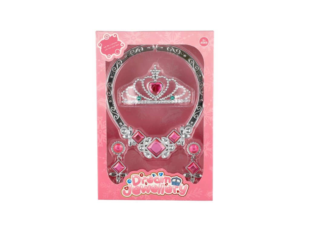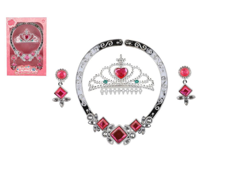 Sada krásy plast korunka, náhrdelník, naušnice v krabičce 15x22 cm