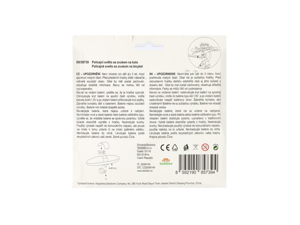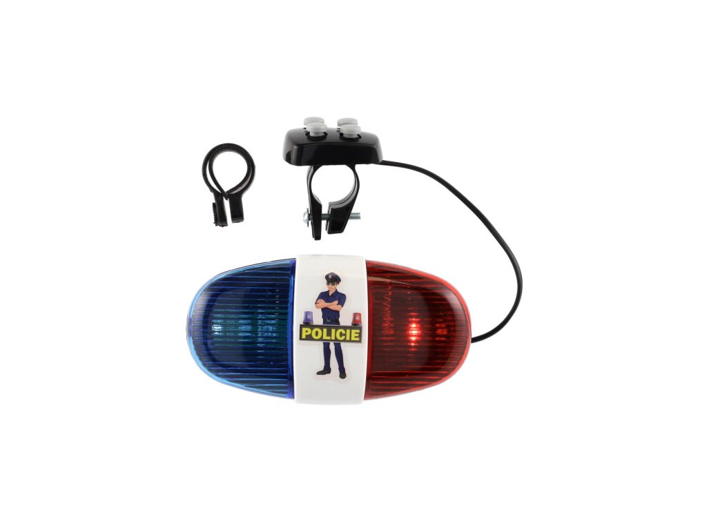 Díky policejnímu světlu budou děti na kole pořádně vidět a díky siréně i slyšet. Siréna má 4 melodie, které hrají při držení tlačítka. Siréna je pro použití venku, nepřikládejte k uchu.Světlo je na baterie 2xAA 1,5V, které nejsou součástí.