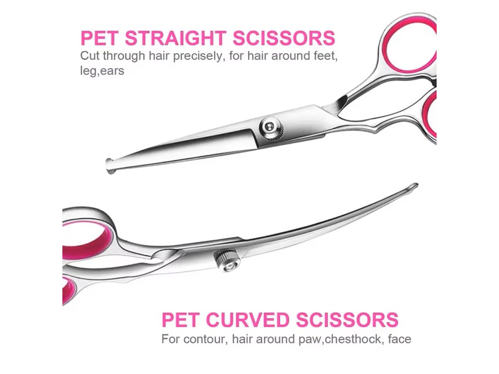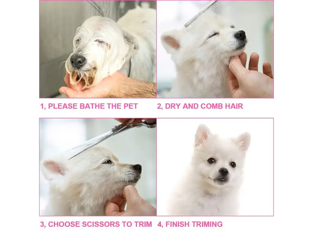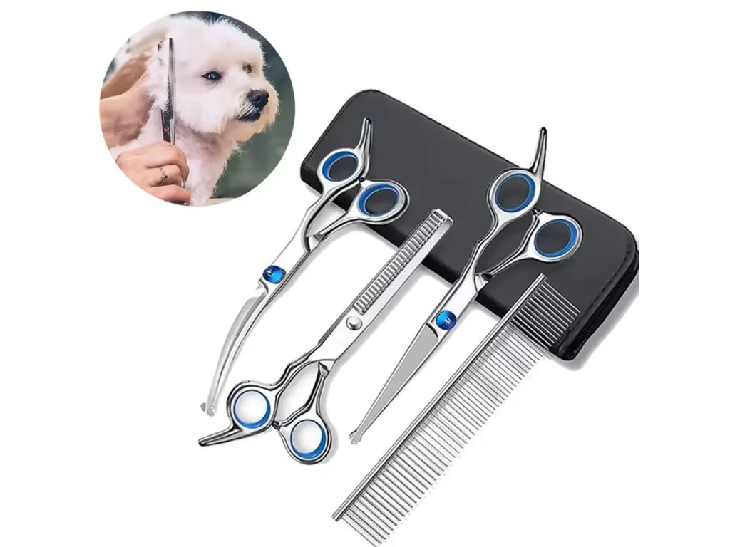 4-dílná sada pro úpravu srsti psů (3x nůžky + 1x hřeben)