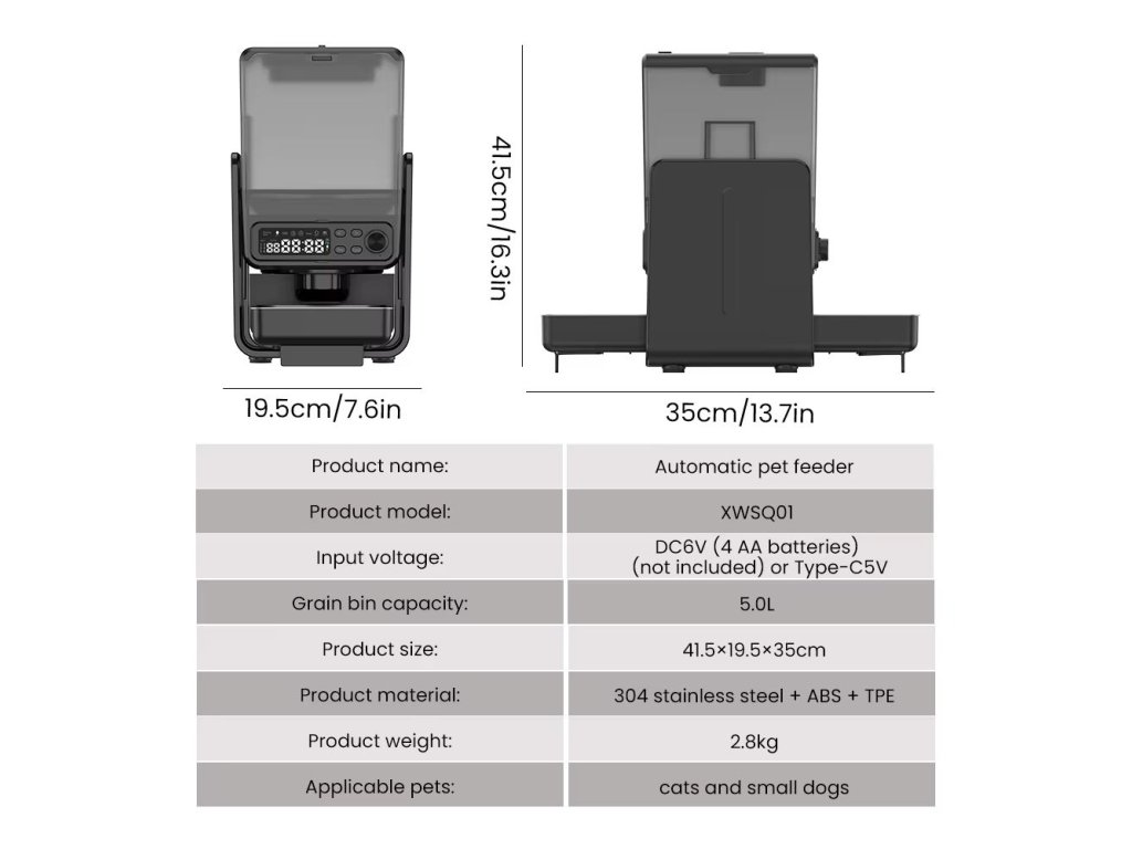 Chytrý dávkovač krmiva se dvěma miskami (automatický plánovač jídla)