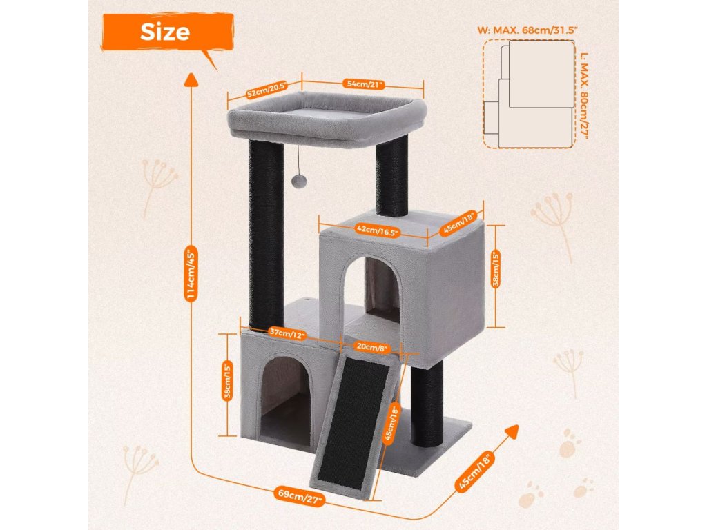 KOČIČÍ STROM - stabilní, 3 patrový (114 cm)