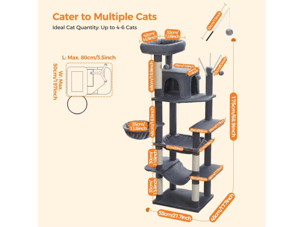 KOČIČÍ STROM - stabilní, 6 patrový (175 cm)