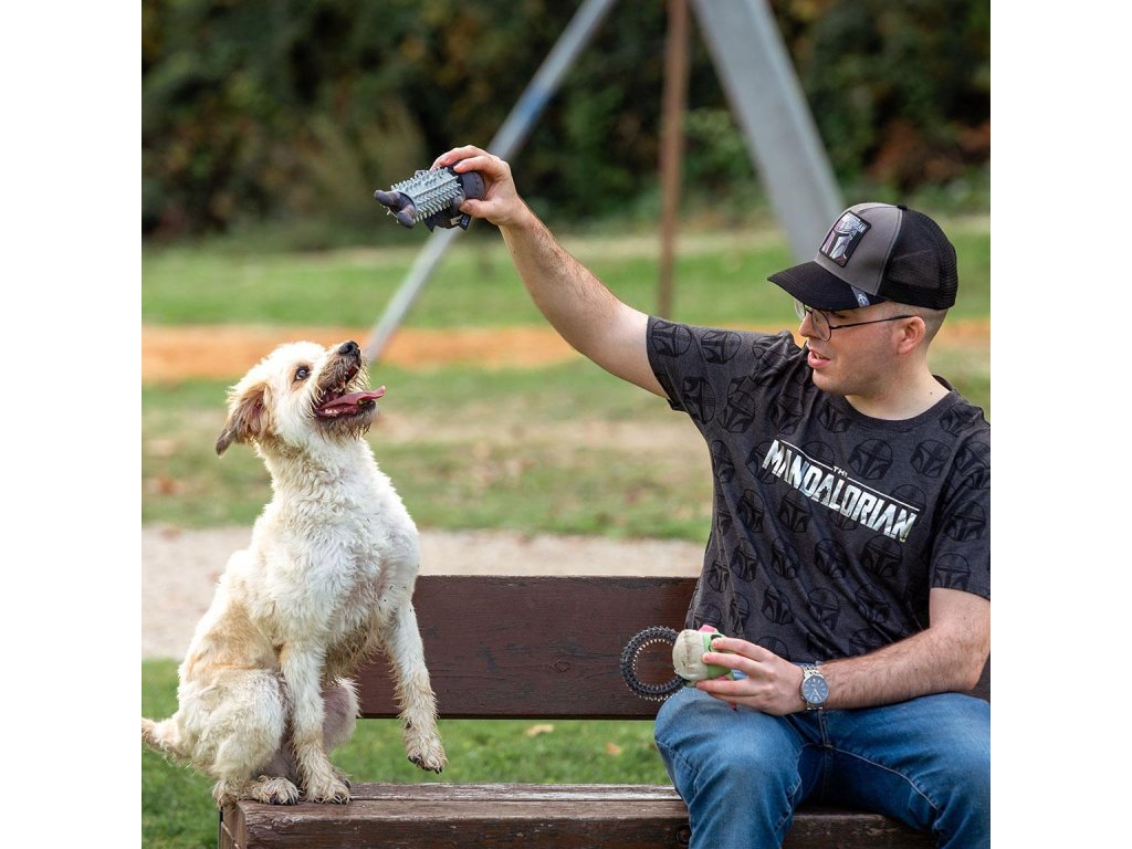 Kousátko s motivem Star Wars The Mandalorian, kterou si zamiluje každý pejsek. Materiál: polyester, pu Odolný materiál Vyčistí zoubky a zabaví pejska Rozměry: 30 x 11 cm Hmotnost: 0,167 kg Oficiální licence, Cerda.