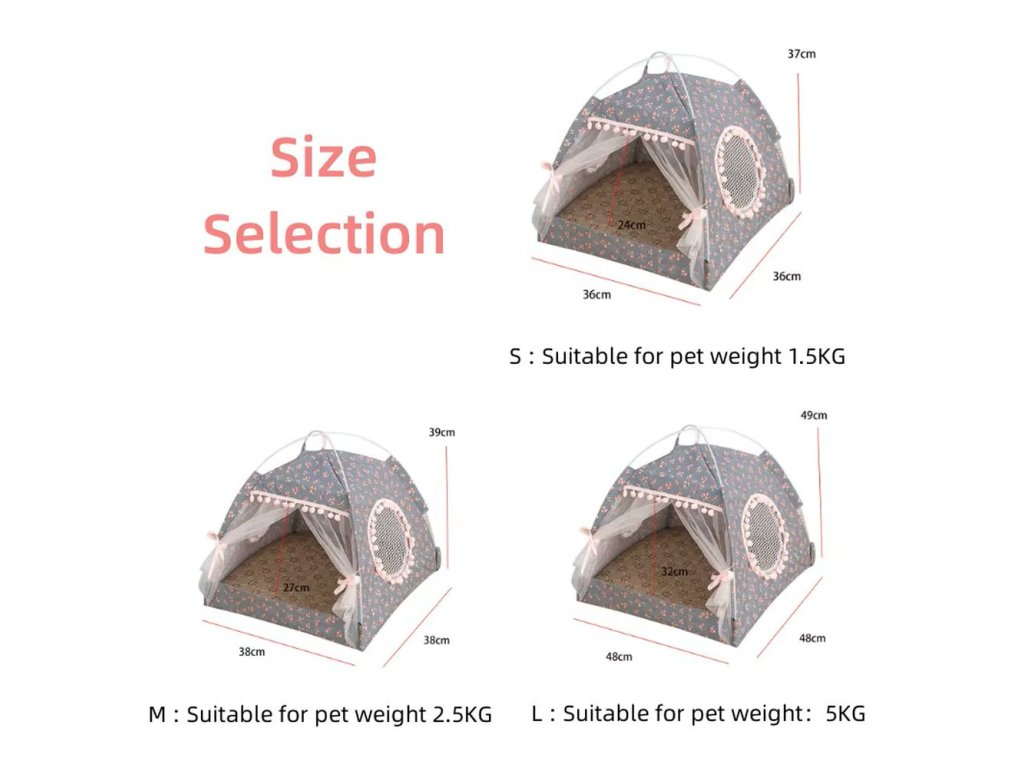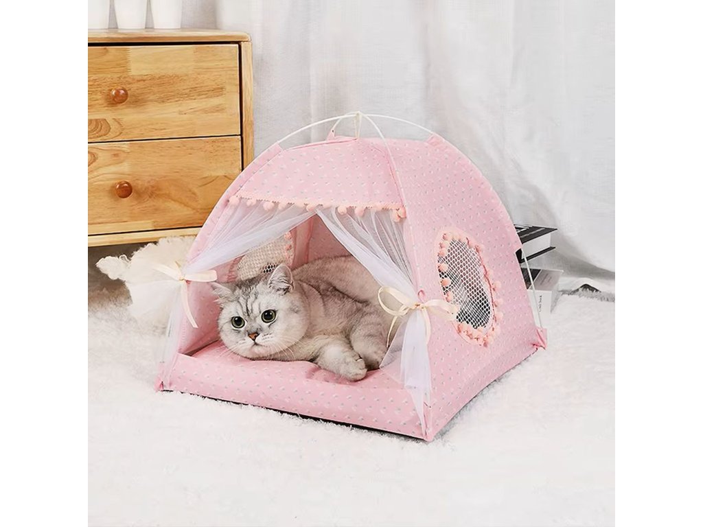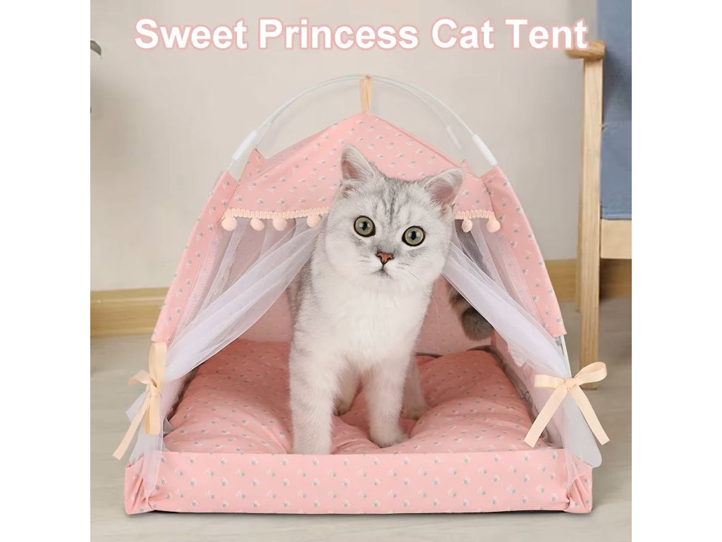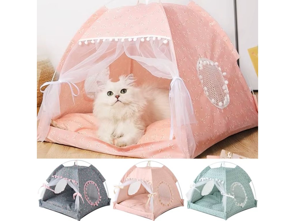 Tento přenosný domeček si každá kočička ihned zamiluje. Domeček poskytne dostatek prostoru pro odpočinek a navíc bude mít vaše kočička jen svoje místo, kde se bude moci schovat a relaxovat nikým nerušena. Domeček se staví pomocí dvou ohebných tyčí, podobně jako stan. Je dodáván s polštářkem. Můžete jej použít na terase, na zahradě nebo v obývacím pokoji. Vybírejte z více variant a 3 velikostí.