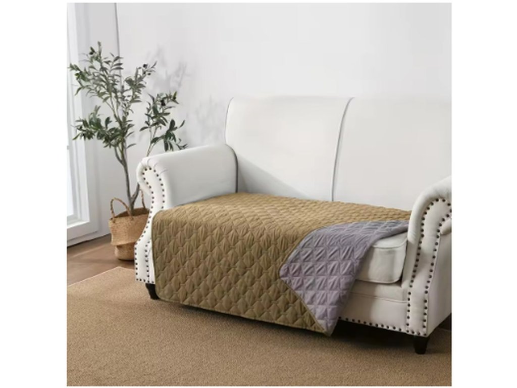 Oboustranný voděodolný přehoz (deka) na pohovku - šedý/khaki