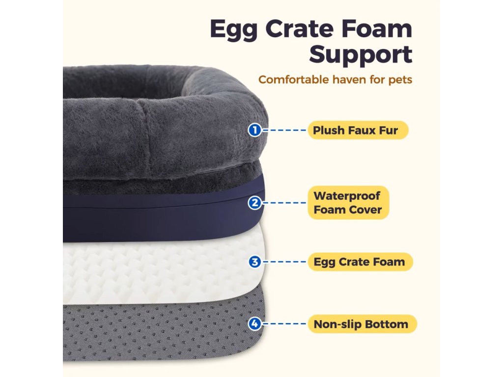 Materiál: umělá kožešina, pěnový potah, terapeutická pěna, protiskluzové dno