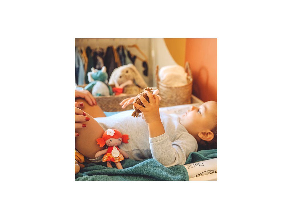 Malá panenka s měkkým tělem oblečená v hezkém oblečku. Tato panenka se snadno ovládá díky své malé velikosti. U dětí rozvíjí jemné motorické dovednosti a probouzí jejich smysly. Údržba: Perte v lázni na 30°. Doporučení: Přirozené nebo nízkoteplotní sušení. Hračka splňuje evropské bezpečností CE normy. Dodáváno v krabičce.