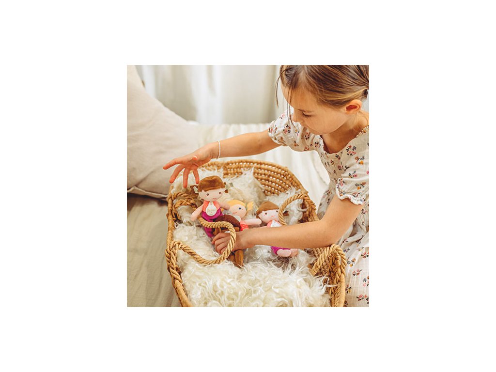 Malá panenka s měkkým tělem oblečená v hezkém oblečku. Tato panenka se snadno ovládá díky své malé velikosti. U dětí rozvíjí jemné motorické dovednosti a probouzí jejich smysly. Údržba: Perte v lázni na 30°. Doporučení: Přirozené nebo nízkoteplotní sušení. Hračka splňuje evropské bezpečností CE normy. Dodáváno v krabičce.