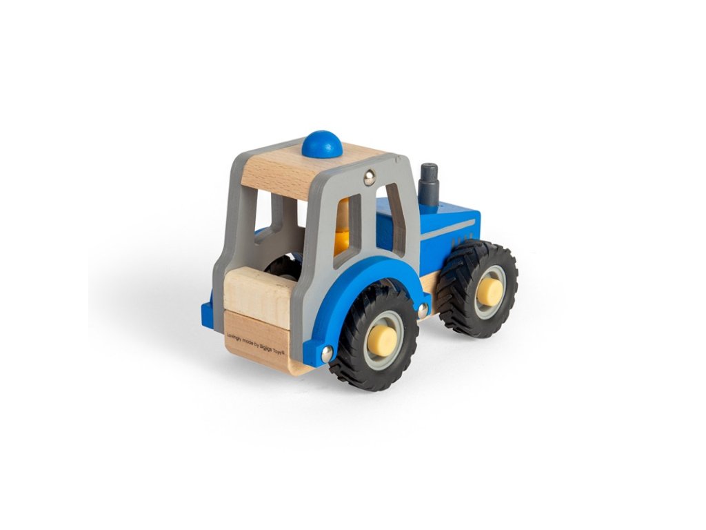Dřevěný traktor pro představivou hru. Tělo traktoru je ze dřeva, má zaoblené hrany, děti upoutá kombinací přírodního dřeva, modrého a šedého laku. Kolečka jsou vyrobená z gumy, zajišťují tichý chod na všech typech povrchů. Traktor je jako opravdový! Děti si s ním procvičí motoriku, zručnost a koordinaci ruka-oko. Vyrobeno z udržitelného FSC® certifikovaného dřeva, malováno netoxickými barvami a laky. Odpovídá evropským bezpečnostním standardům. Hlavní vlastnosti: udržitelné materiálypohyblivé částizaoblené hranyvyrobeno z FSC® certifikovaného dřeva Značka a certifikát FSC® (Forest Stewardship Council) zaručuje, že dřevo, ze kterého byl produkt vyroben, nebylo vytěženo nelegálně a pochází z lesů obhospodařovaných šetrným či přírodě blízkým způsobem, ve kterém jsou dodržovány přísné environmentální a sociální požadavky. Značka FSC® na výrobku znamená, že svým nákupem pomáháte chránit lesy a podporujete šetrné, odpovědné či přírodě blízké hospodaření, díky kterému jsou naše lesy stabilnější, zdravější, mají přirozenou druhovou skladbu a lépe odolávají negativním následkům klimatických změn.Doplňkové parametry