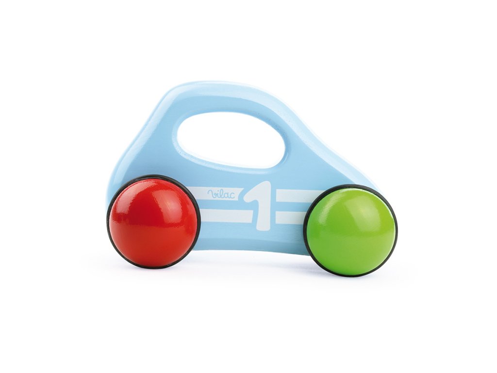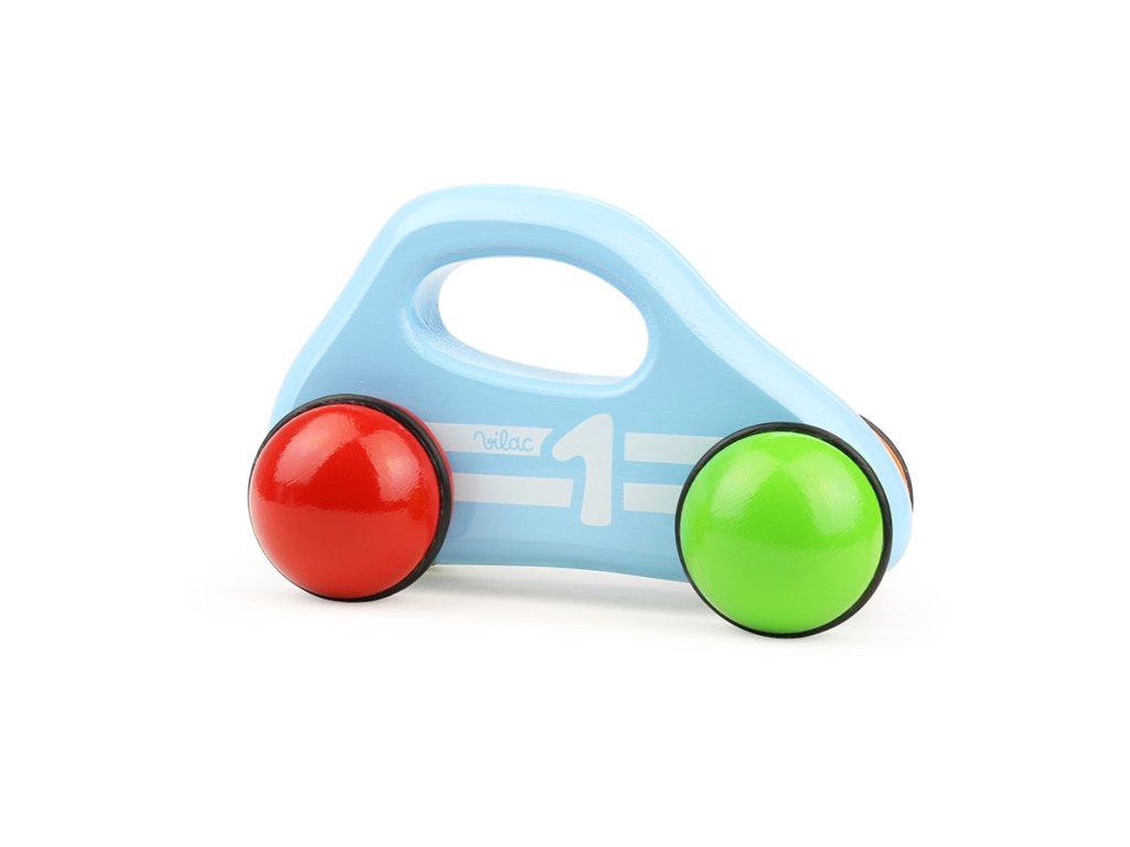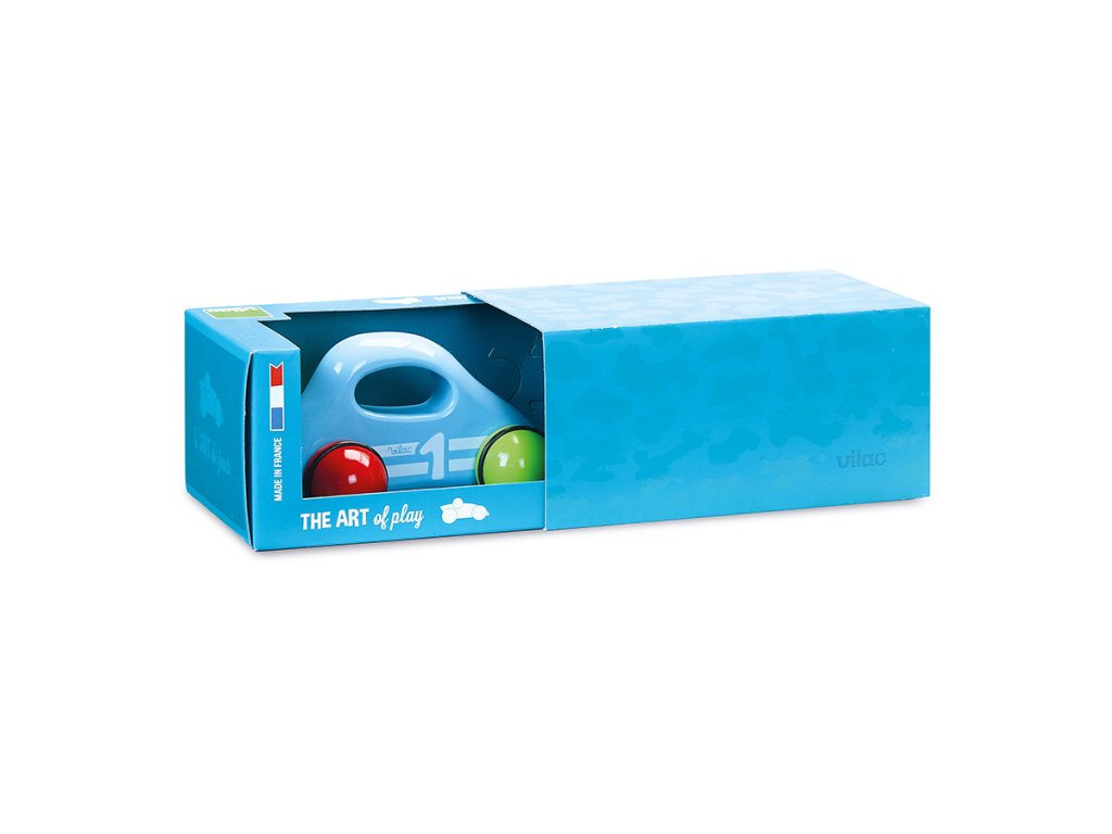 Modré závodní auto speciálního dizajnu, vyrobeno z lakovaného dřeva s čtyřbarevnými pogumovanými koly. Je vhodné jak ke hraní tak jako dekorace do pokojů dětí či dospělých. Vyrobeno ve Francii. Hlavní vlastnosti: vyrobeno ve FranciiDoplňkové parametry