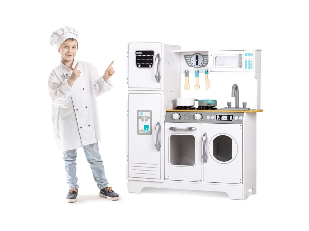 Díky kuchyňce od ECOTOYS se děti budou cítit jako skutečný šéfkuchař a vaření pro celou rodinu je jen tak neomrzí.
