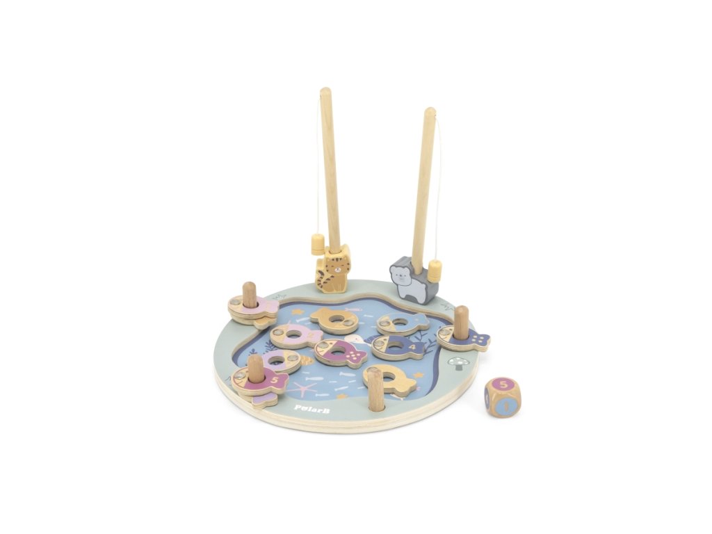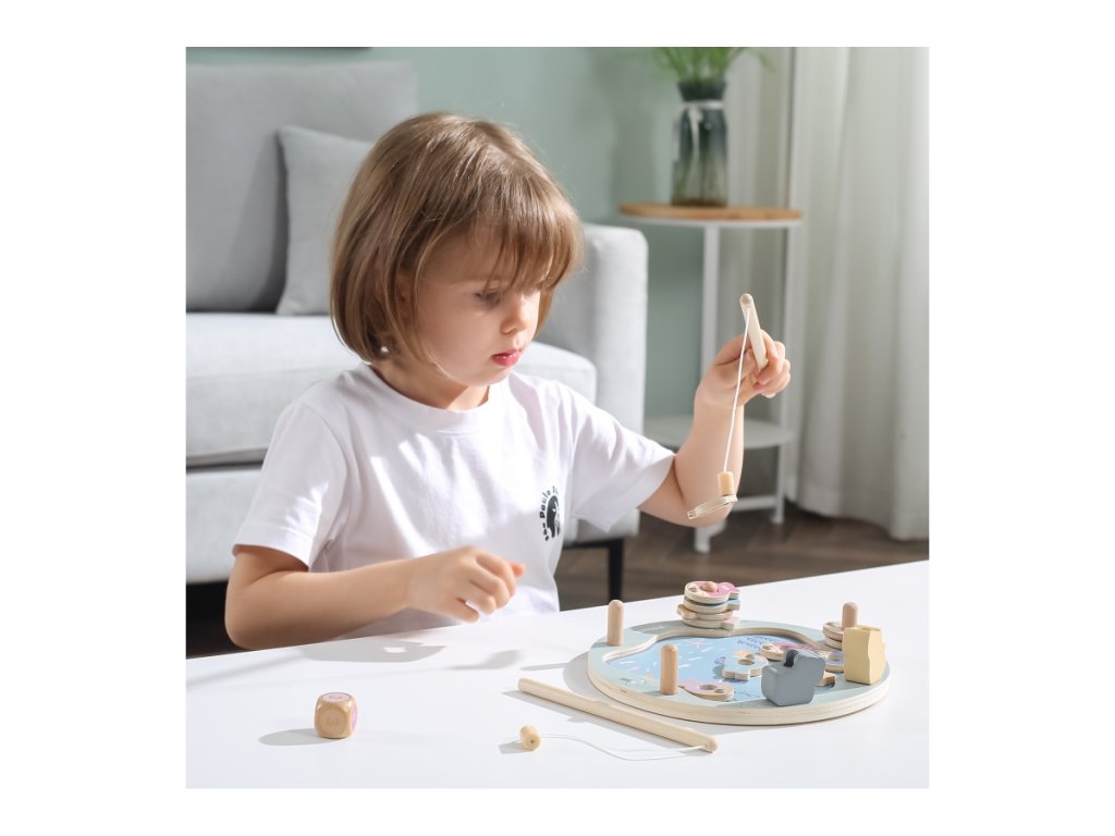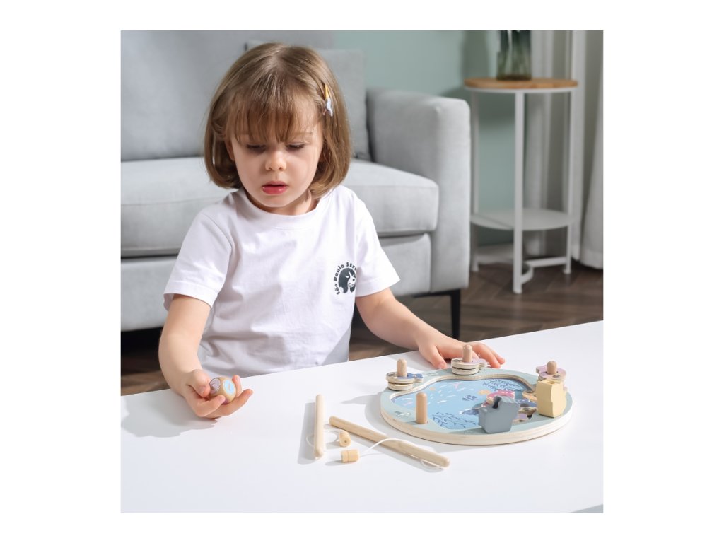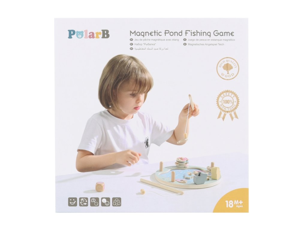 Tato magnetická rybářská hra se skládá z rybníka, 12 ryb, kostky a dvou rybářských prutů. Pomocí magnetických tyčí chyťte ryby a položte je na dřevěný kus. Ryby lze rozlišit buď podle barvy, nebo podle čísla na zadní straně, takže je to skvělý nástroj pro představení pojmů barva a číslo. Pomáhá pěstovat koordinaci ruka-oko a trpělivost a zvyšuje sebevědomí. Rozmer hrací desky cca 22,5 x 21,5 cm. Rozměr balení cca 23,5 x 23,5 x 6 cm. Věk 18m+Doplňkové parametry