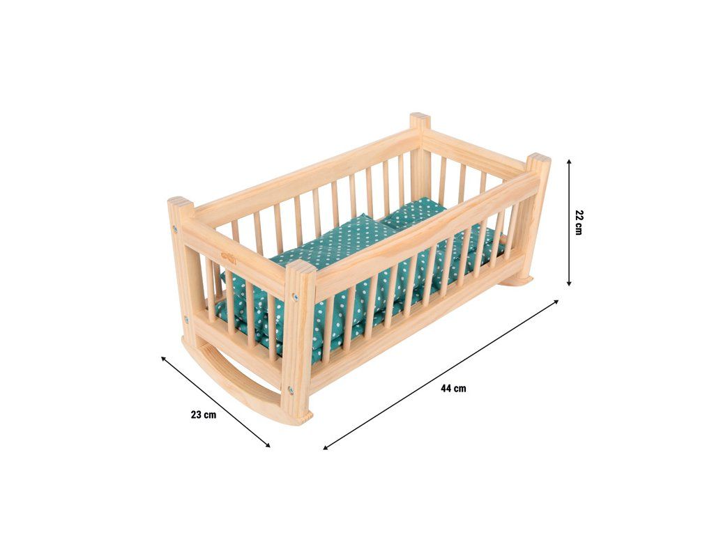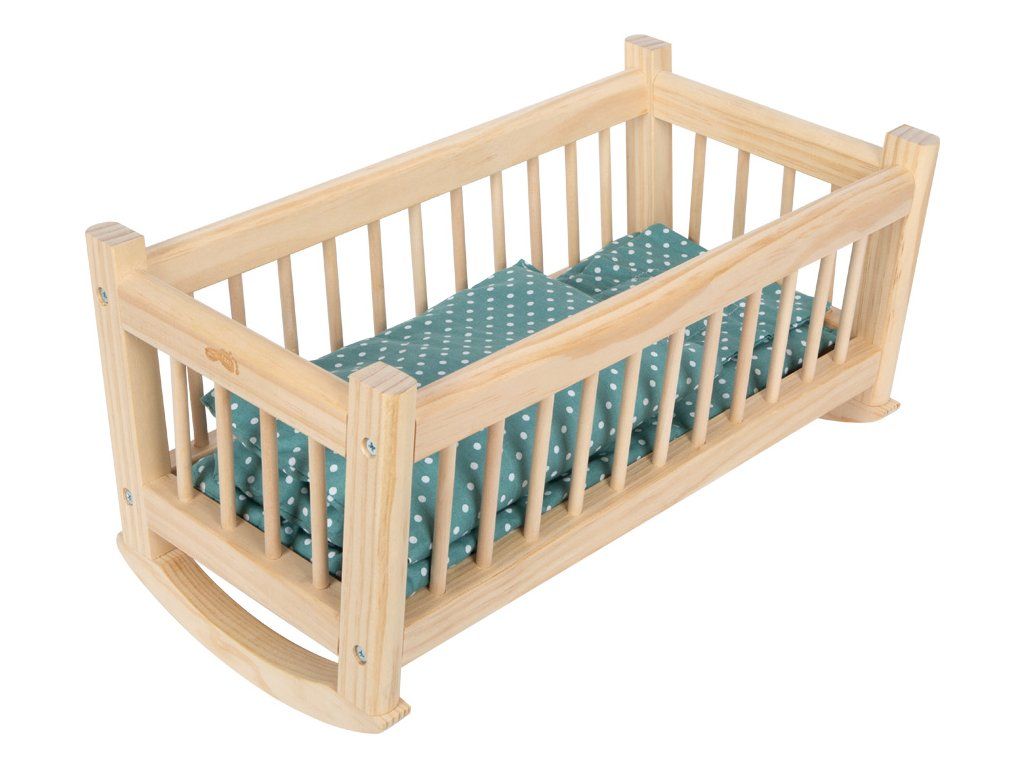 Když jsou oblíbené panenky a plyšáci unavení, přichází na řadu večerní rituál – stejně jako u skutečných rodičů. Přírodní vzhled dřeva a nadčasový design dělají z této kolébky pro panenky stylový doplněk každého dětského pokoje. Díky zaobleným hranám, pevné konstrukci a klasickému tvaru kolébky spojuje bezpečnost s přirozeným vzhledem. Součástí je sladěné ložní prádlo – velká deka, polštář a prostěradlo, které zajišťuje maximální pohodlí a vybízí děti k dlouhému a kreativnímu hraní. Jemné houpání pomáhá panenkám i plyšákům usnout a zároveň podporuje rozvoj dětské fantazie. Při hře na rodiče si děti přirozeně osvojují péči, každodenní rituály i sociální dovednosti. Houpací pohyb navíc rozvíjí jemnou motoriku a cit pro rytmus. Kvalitní zpracování a stabilní konstrukce zaručují dlouhou životnost a spoustu zábavy. Perfektní doplněk do každého dětského pokojíčku i k dalšímu nábytku pro panenky.