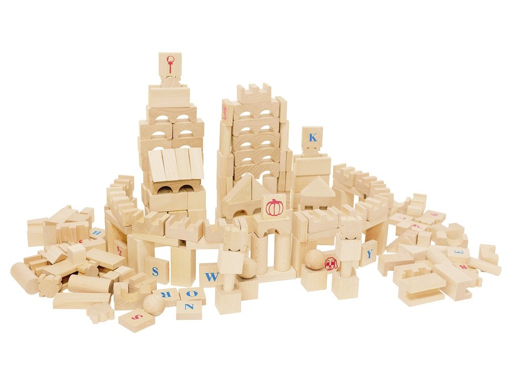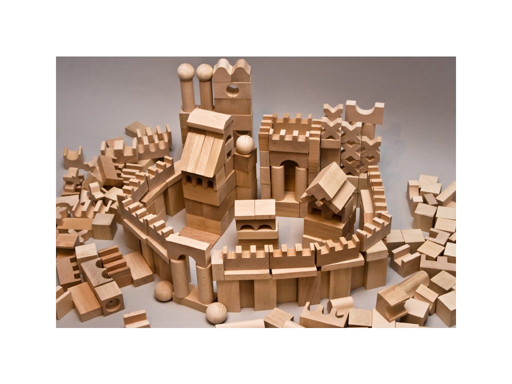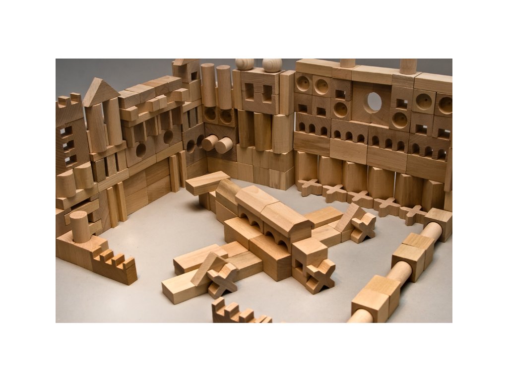 Velká sada dřevěných kostek nabízí nekonečné možnosti stavění, tvoření a objevování. Díky 220 pečlivě opracovaným dílkům si děti mohou postavit hrady, města, věže, mosty i vlastní originální stavby podle své fantazie.