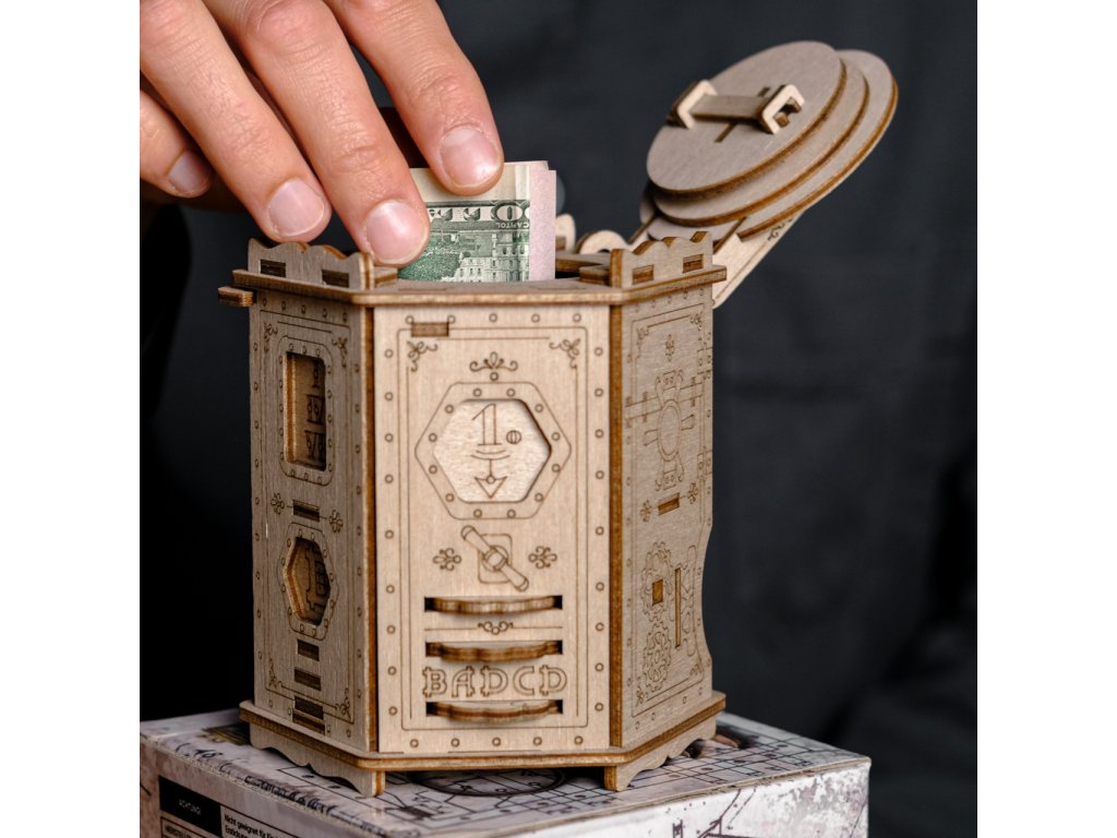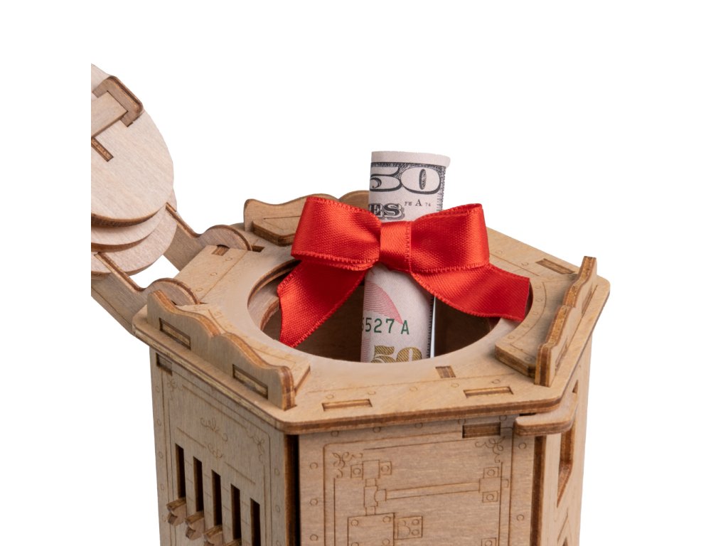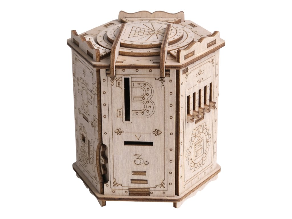 Je rok 1962, sedíte se svými kumpány v zatuchlém skladu hospody svého strejdy. To on vám řekl o převratu. O loupeži pevnosti Fort Knox – místě, kde jsou uloženy rezervy zlata USA. Zlato pro vás ale není nejdůležitějším cílem. Skrývá se tam to, co je hledáno po celém světě. Sám neblaze proslulý zločinec Al Capone položil záhadnou minci do banky tak, že ji nikdo nikdy nenašel. Al Capone řekl: „Ten, kdo minci najde, získá velkou moc a bude moci otevřít jakoukoliv banku. Pochybuji ale, že na světě existuje zločinec, který dokáže toto tajemství odhalit. Co můžete očekávat? To ví jen ti, kteří poklad do pevnosti Fort Knox přinesli. Jedna věc je jistá: pevnost Fort Knox je jedním z nejbezpečnějších míst v USA – prošpikovaná mechanismy navrženými tak, aby byly neprolomitelné. Dokážete získat přístup do trezoru a odhalit tajemství legendárního pokladu? Co na vás čeká v pevnosti Fort Knox?∗★∗Zakuste atmosféru únikových her s originálními scénáři a hádankami u Vás doma! Každý hlavolam ukrývá malou přihrádku, kterou můžete kreativně využít k úschově vodítka ve vlastní dobrodružné hře, nebo zpestření zážitku z drobného dárku. Součástí každého balení je jednoduchý obrázkový návod, který obsahuje také QR kód vedoucí na stránku s nápovědou. Rébus má vždy jedno řešení, kvalitním provedením je ale předurčen k dalšímu použití, neváhejte jím proto dále obdarovat a vyzvat své přátele, nebo členy rodiny. Zážitek obdarovaného zde můžete ještě umocnit za použití Tajemné dárkové krabičky, kterou naleznete v naší nabídce. Hlavní vlastnosti: rozměry vnitřní přihrádky 9×9×4 cmvysoká obtížnost řešeníúniková hra pro více hráčůpřírodní březové dřevovyrobeno v EUDoplňkové parametry