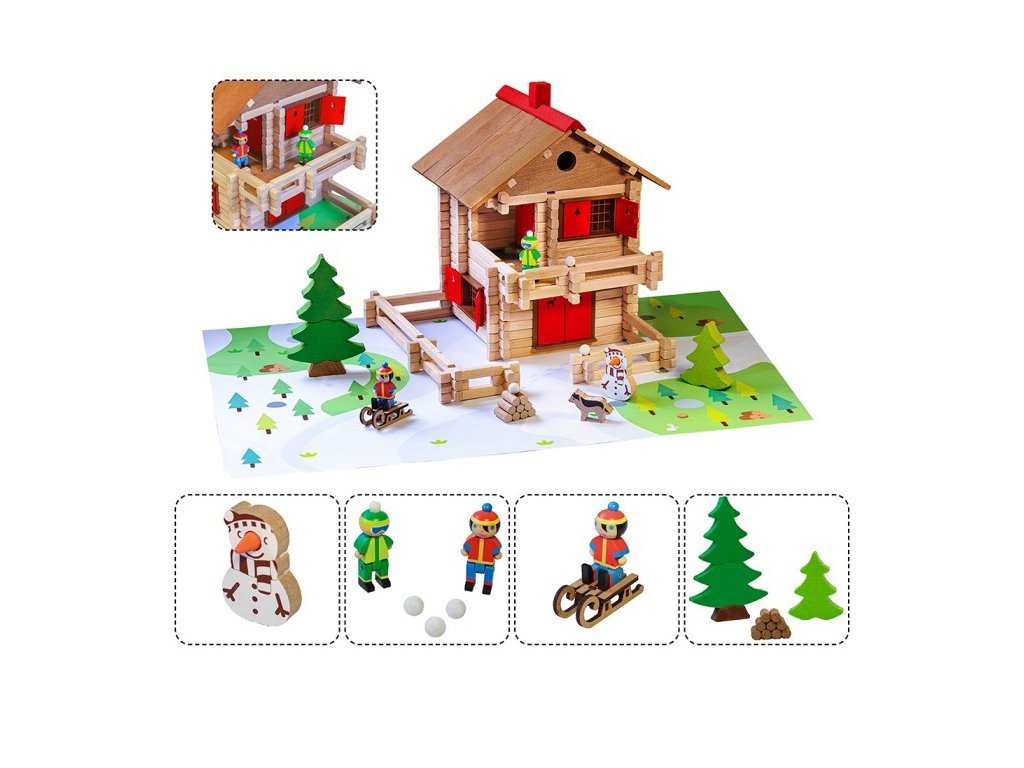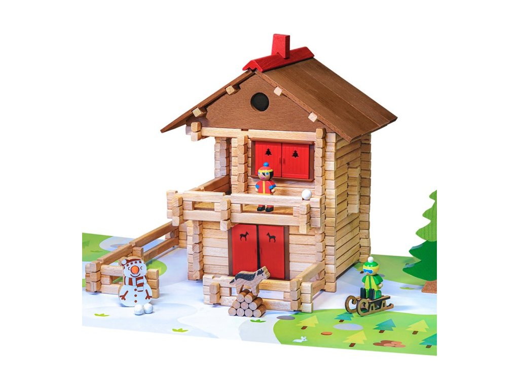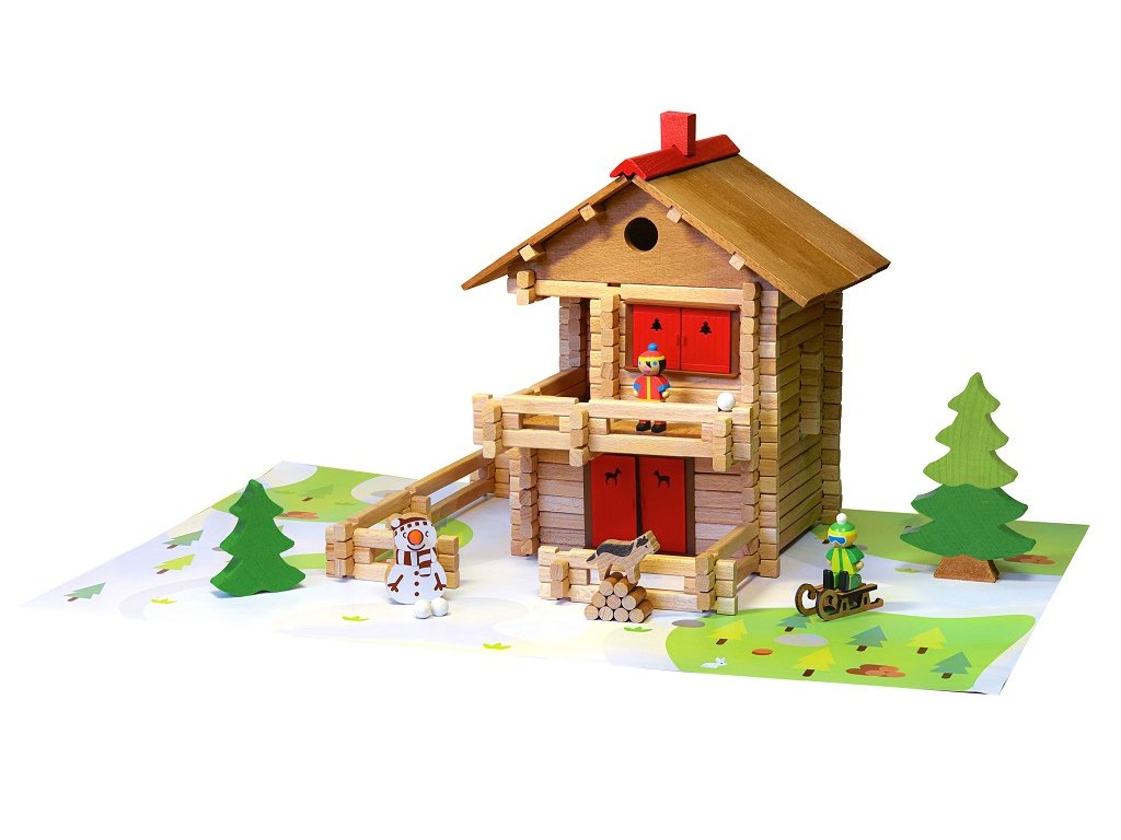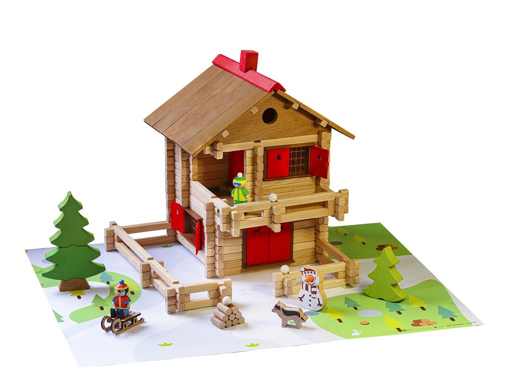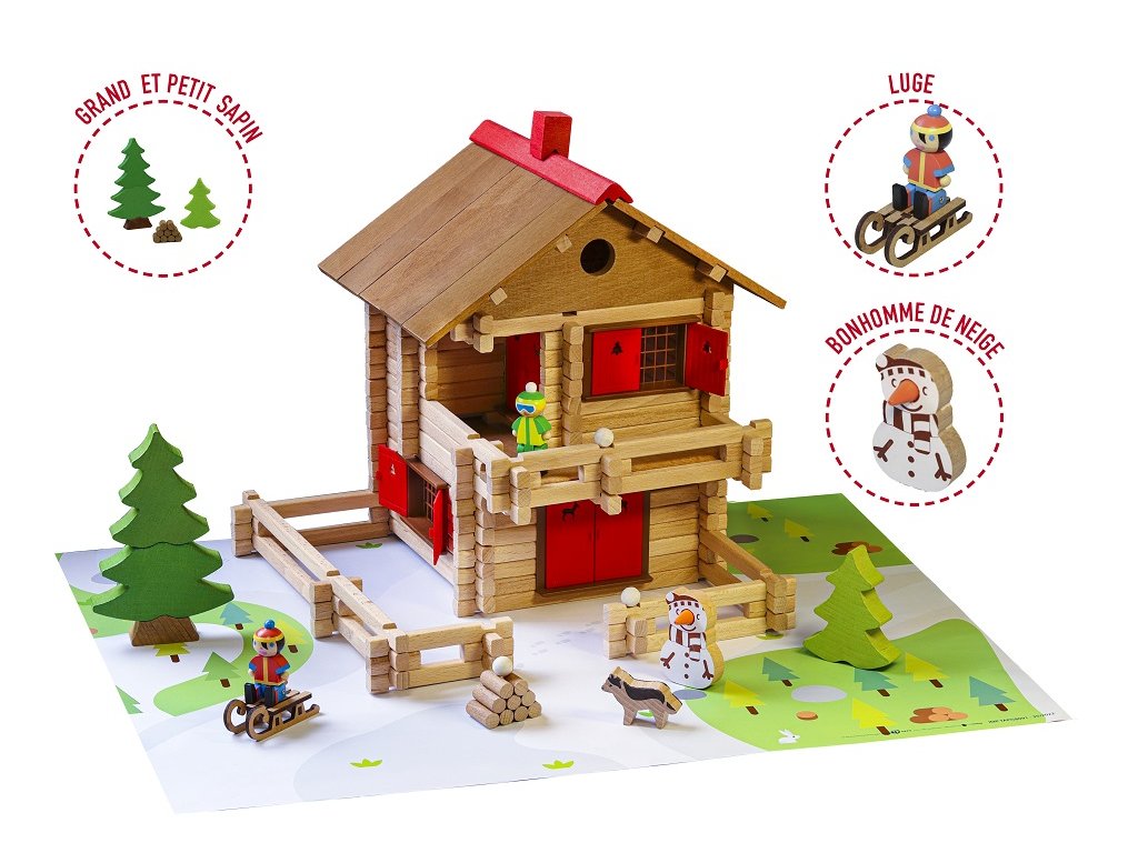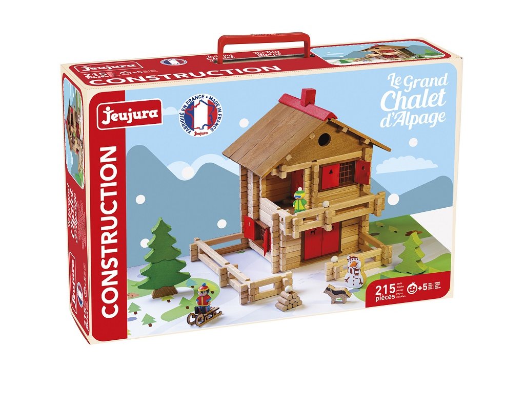Přemýšlíte nad alpskou chatou s velkým balkonem, kde si můžete vychutnat čerstvý horský vzduch? Co takové sáňkování a koulování? S touto chaloupkou si užijete chvíle plné vloček a sněhuláků! Stavebnice Jeujura Constructions mají dlouhou tradici a patří mezi klasické francouzské hračky. Nabízí série tématicky věnované chatám, domkům a farmám, ale také divokému západu a středověku. Dají se mezi sebou volně kombinovat a k řadě z nich je také nabízeno příslušenství, figurky a vozidla. Jsou vyráběny ve Francii, z masivního bukového a borovicového dřeva francouzského původu. Dílky jsou ošetřeny výhradně za použití barev a laků na bázi vody. Každá sada je balena v praktickém lepenkovém kufříku potištěném rostlinnými inkousty a součástí balení je snadno pochopitelný návod.