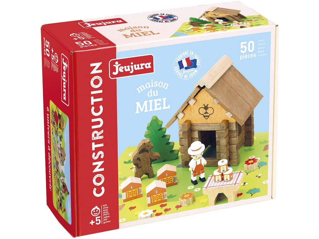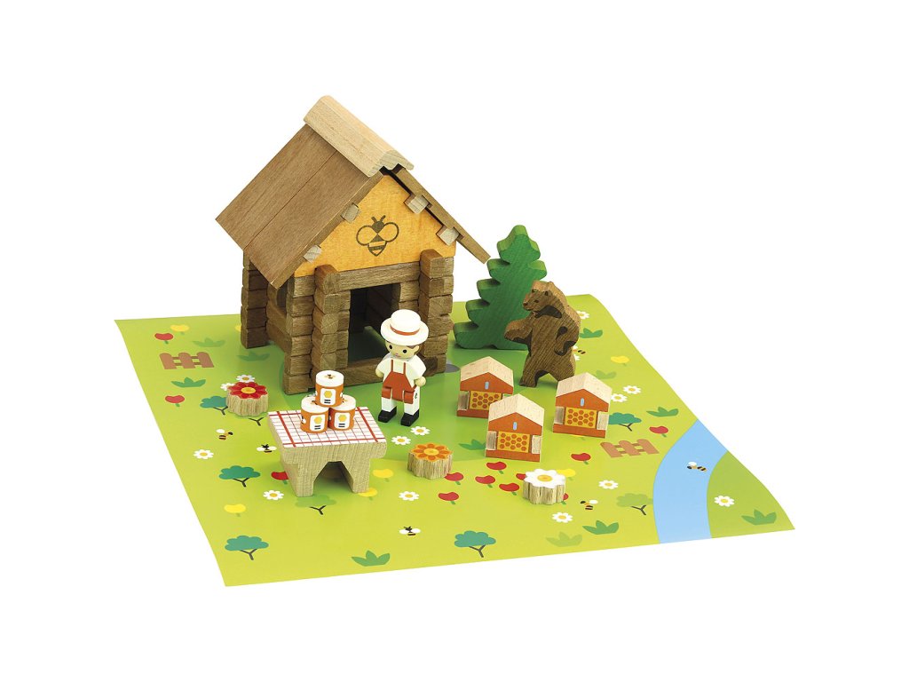 Dřevěná stavebnice včelína rozvíjí fantazii a stane se ozdobou dětského pokoje. Stavebnice Jeujura Constructions mají dlouhou tradici a patří mezi klasické francouzské hračky. Nabízí série tématicky věnované chatám, domkům a farmám, ale také divokému západu a středověku. Dají se mezi sebou volně kombinovat a k řadě z nich je také nabízeno příslušenství, figurky a vozidla. Jsou vyráběny ve Francii, z masivního bukového a borovicového dřeva francouzského původu. Dílky jsou ošetřeny výhradně za použití barev a laků na bázi vody. Každá sada je balena v praktickém lepenkovém kufříku potištěném rostlinnými inkousty a součástí balení je snadno pochopitelný návod. Hlavní vlastnosti: 50 dílků z masivního dřeva a podložkapraktické balenívyrobeno ve FranciiDoplňkové parametry