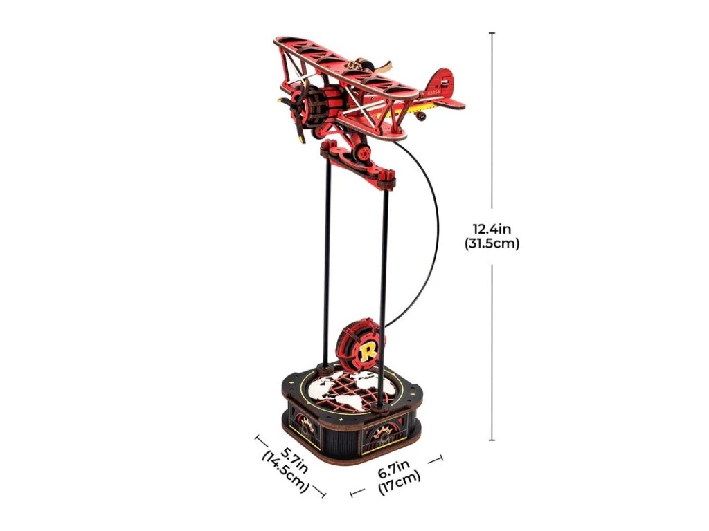 Užijte si bezpečný let na palubě červeného dvojplošníku s otevřeným kokpitem s otáčející se třílistou vrtulí v nápadné černožluté barevné kombinaci. Dvojplošník je replikou letadla Gloster Gladiator z 30. let 20. století v měřítku 1 : 60, jednoho z nejikoničtějších a posledních válečných dvojplošníků, které kdy byly vyrobeny. Má pohyblivé kormidlo, což dodává jeho designu interaktivní prvek. Letadlo uvedete do pohybu jemným zatlačením na závaží kyvadla, které zahájí konzistentní kývavý pohyb, který napodobuje houpání a naklánění letadla při letu. Je součástí řady Gravity Swing, která spojuje zábavu se vzděláváním a probouzí zvědavost všech věkových kategorií. Tyto chytré modely s kyvadlovým mechanismem umožňují lidem objevovat základní principy fyziky hravou formou. Pojmy jako gravitace, pohyb, rovnováha či přeměna potenciální a kinetické energie se stávají nejen pochopitelnými, ale i zábavnými. Věda se mění v dobrodružství, které rozvíjí kreativitu i praktické dovednosti.