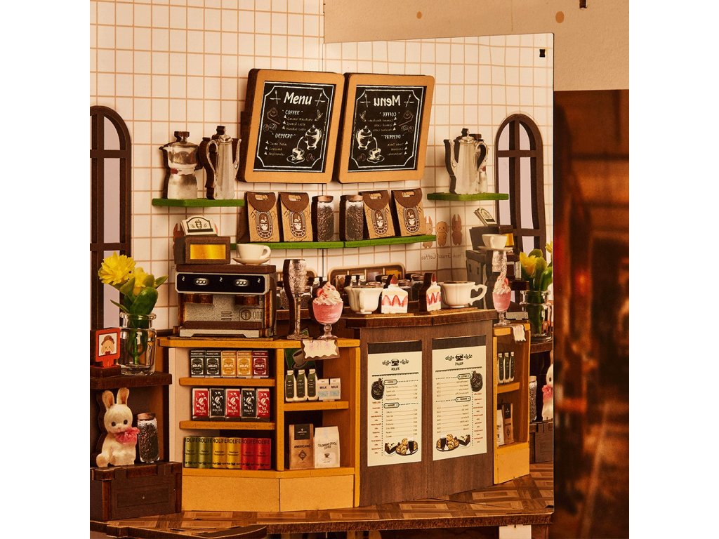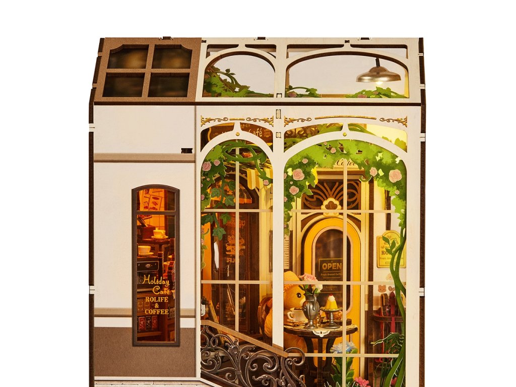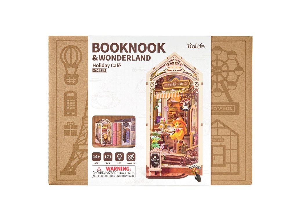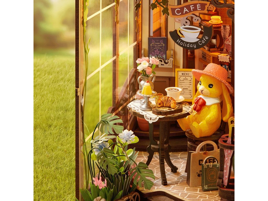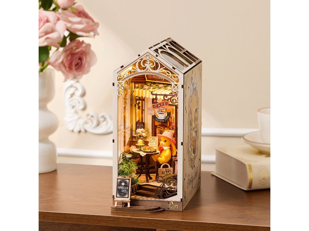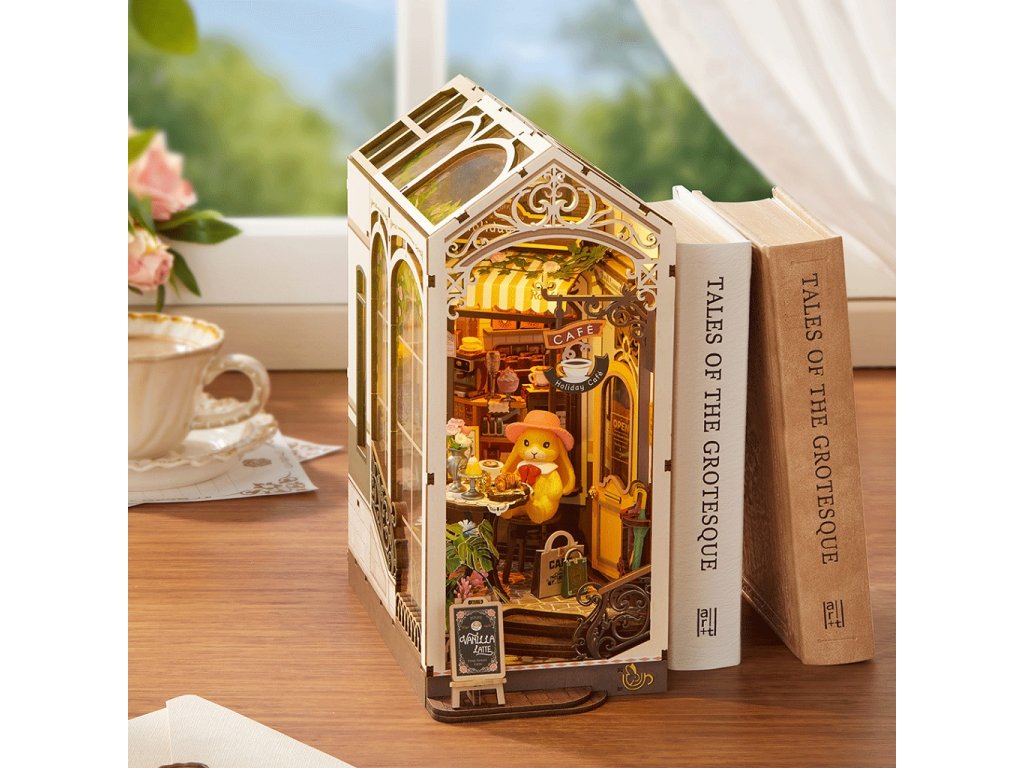 RoboTime 3D skládačka Zarážka na knihy Miniatura domečku Prázdninová kavárna
