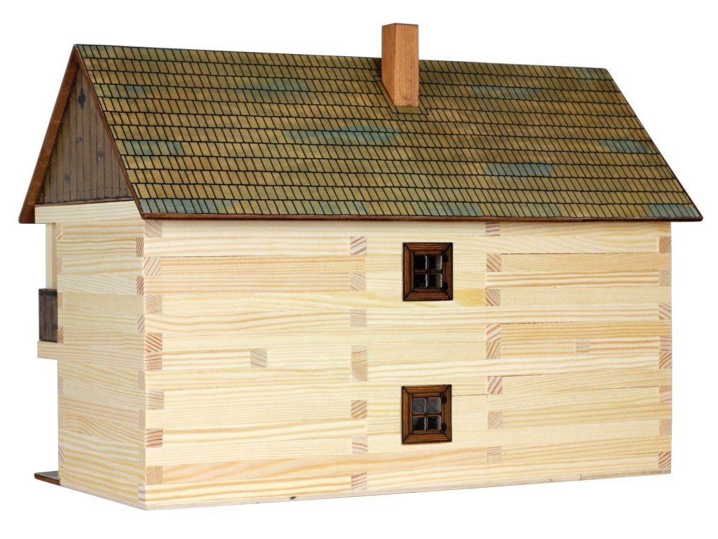Dřevěná slepovací stavebnice obsahuje dřevěné hranolky daných délek ke stavbě roubených stěn, díly na střechy a štíty, kartonové výseky oken a dveří i předtištěné papírové potisky. Součástí stavebnice je schematický montážní plán. Ve stavebnicích HOBBY KITS naleznete vše potřebné k sestavení. Ke stavbě slouží jednoduché obrázkové návody se symboly jednotlivých úkonů, a proto je můžou sestavovat děti po celém světě. Základním stavebním materiálem jsou přesně zhotovené hranoly z borového dřeva a rozměru 9×9 mm v délkách od 16 do 230 mm určených ke stavbě roubených stěn. Plochy střech, štítů, pavlačí a teras jsou zhotoveny z překližky 3 mm a polepují se papírovými potisky. Funkční dveře a okna zasklená folií jsou z potisklého kartonu. Jednotlivé stavby se slepují lepidlem na dřevo a papír (není obsahem). Součástí návodu jsou malé kapitoly ze stavebního oboru a historie lidové architektury. Modely staveb jsou v měřítku 1:32.Hotové stavby jsou estetickými doplňky dětských pokojíčků, využívají se ke hrám s autíčky, zvířátky, vojáčky i panenkami, o vánocích mohou tvořit základ lidového Betlému. Historie budovyPatří mezi nejvýstavnější a nejrozvinutější typ staveb. Slohově vychází z městských staveb, má v patře světničky a pavlače. Fojt byl starostou obce. Svůj úřad kupoval od šlechty pro sebe a své potomky, aby mohl spravovat obec. K fojtství patřila zpravidla krčma, pila, honitba, či mlýn. Hlavní vlastnosti: 298 dílů celkemMěřítko: 1:32precizní a pečlivé zpracováníz odolného borového dřevavyrobeno v České republice Ukázka stavby a velikosti dílů, video je pouze ilustrační. Dokumentace: návod ke stavběDoplňkové parametry