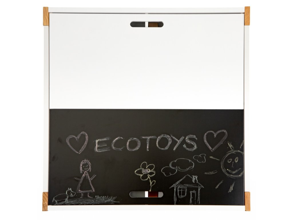 Jednu část desky lze snadno otočit a využít ji jako tabuli pro psaní křídou.