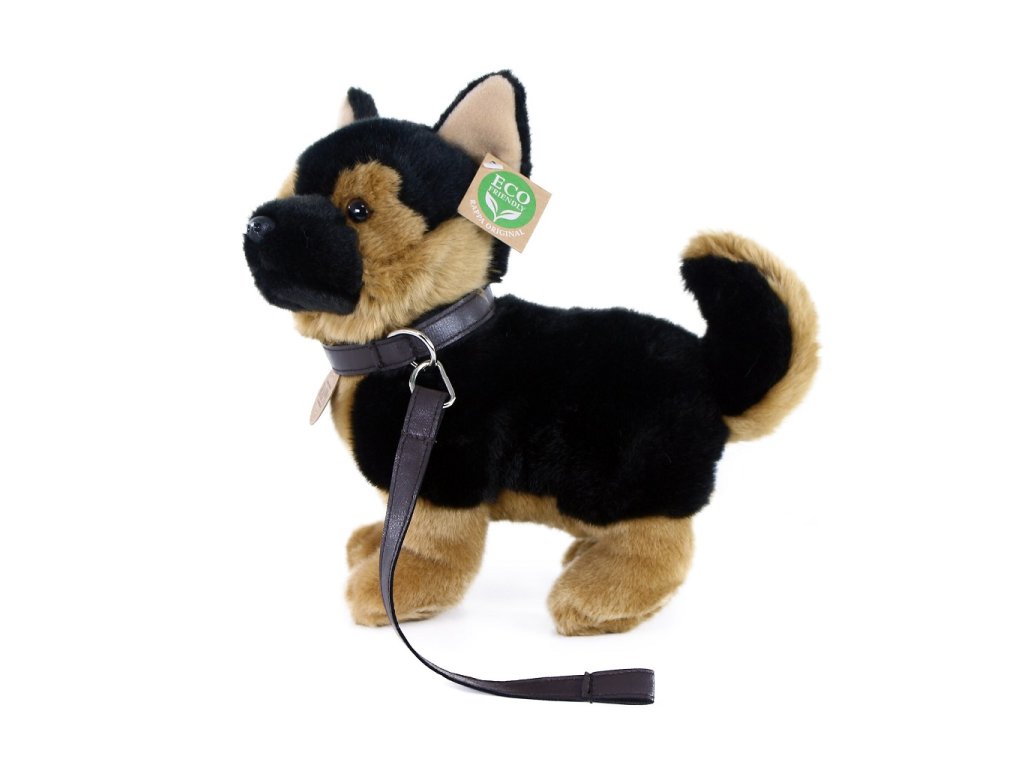 Plyšový pes německý ovčák s vodítkem stojící 23 cm ECO-FRIENDLY