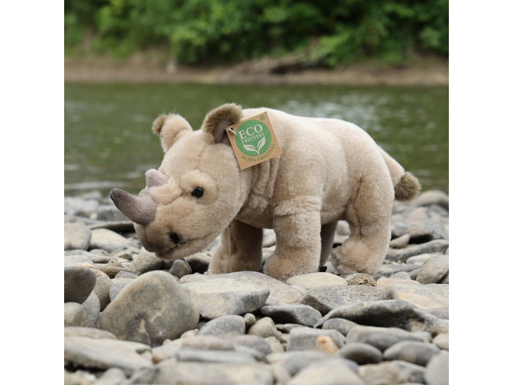 Plyšový nosorožec stojící o velikosti 23 cm je ručně ušitý z vysoce kvalitního, jemného plyše, a díky tomu vypadá jako živý. Tento plyšový kousek je ideálním dárkem pro všechny milovníky heboučkých plyšáků. Je součástí exkluzivní kolekce plyšových hraček značky RAPPA.