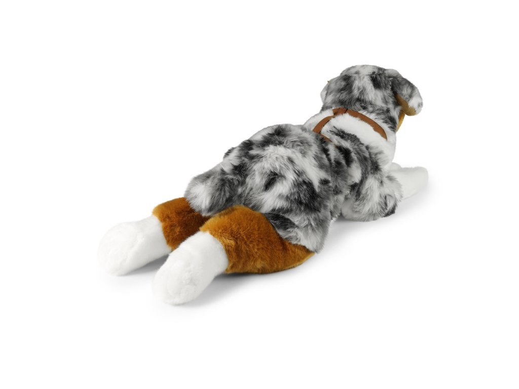 Plyšový pes australský ovčák ležící o velikosti 61 cm je ručně ušitý z vysoce kvalitního jemného plyše, a díky tomu vypadá jako živý. Tento plyšový kousek je ideálním dárkem pro všechny milovníky heboučkých plyšáků. Je součástí exkluzivní kolekce plyšových hraček značky RAPPA.