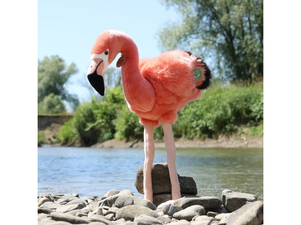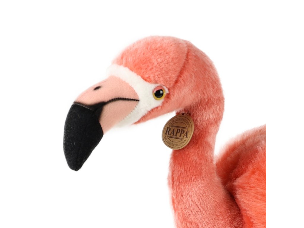 Plyšový plameňák o velikosti 46 cm je ručně ušitý z vysoce kvalitního, jemného plyše, a díky tomu vypadá jako živý. Je součástí exkluzivní kolekce plyšových hraček RAPPA.