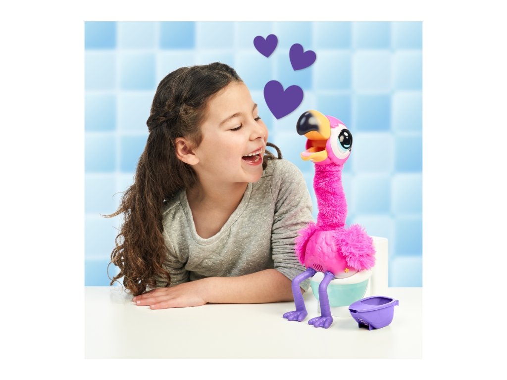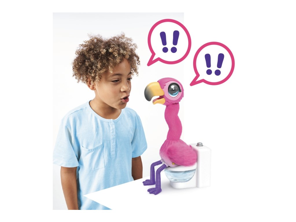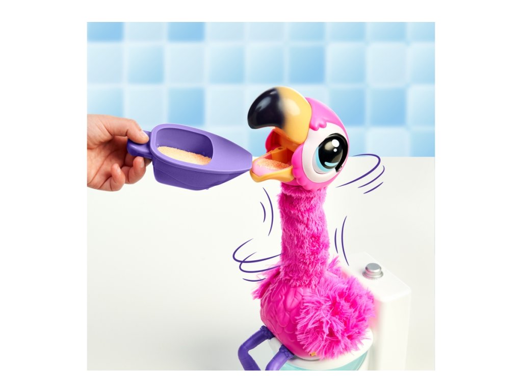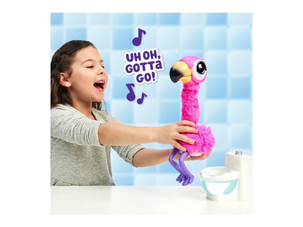 Plameňák Potyi jí a kaká. Děti mohou interaktivního růžového plameňáka krmit speciálním pískem Aqua. Potyi miluje zpívání, tancování a mluvení. Jakmile je plný, je třeba ho rychle položit na toaletu, protože je připravený kakat! Dětem to signalizuje anglickou frází „Uh, oh, I gotta Go“ (Uh, oh, I gotta Go). Poté, co se vyprázdní, rád si povídá se svým majitelem a opakuje, co mu říká. Nohy a paže plameňáka jsou vyrobeny z měkké gumy a jeho dlouhý krk je pokryt plyšovým materiálem. Písek Aqua lze znovu použít po každém krmení a návštěvě toalety. Plameňák Potyi bude děti bavit a zabavovat na celé hodiny svým zábavným kakáním a interaktivními aktivitami. Doporučený věk 4+Doplňkové parametry