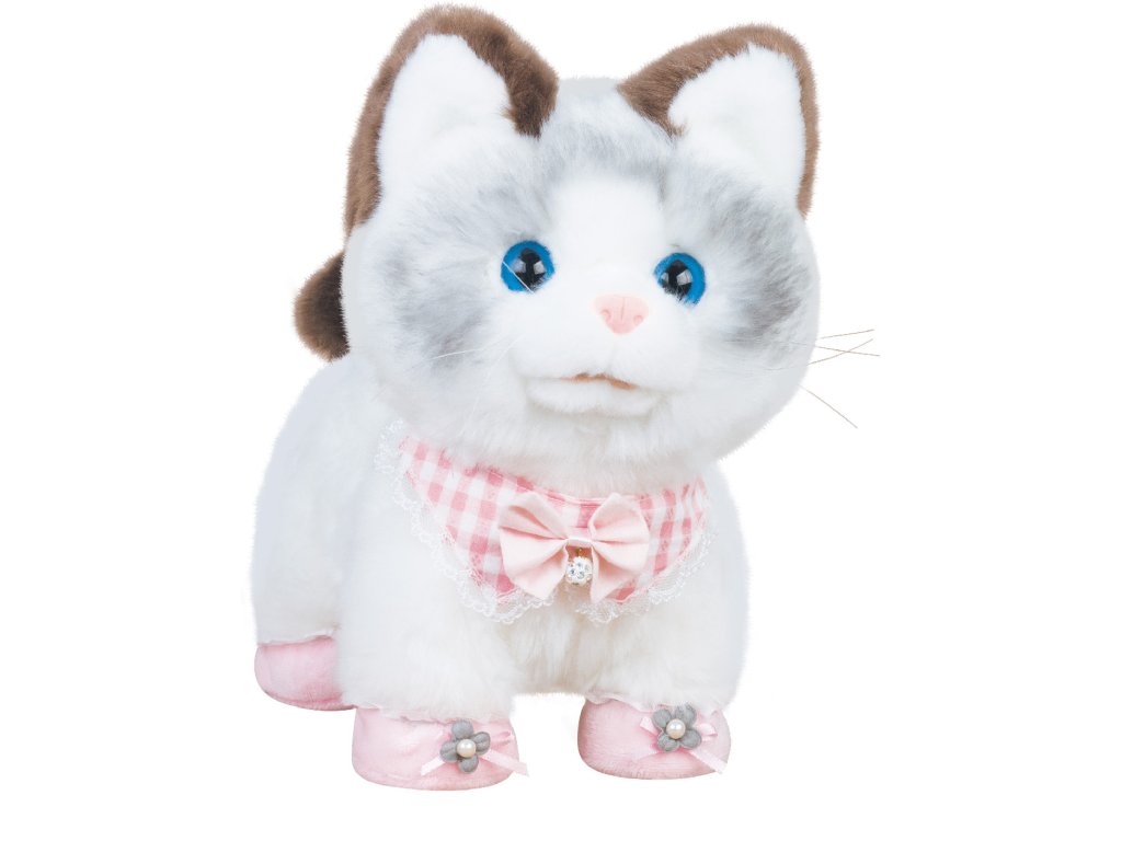 Chodí a Vydává Zvuky: Kočička Mína se aktivuje stiskem tlačítek na hlavě, krku a ocásku. Umí se ladně pohybovat, vesele vrtět ocáskem a vydávat realistické mňoukání a hrtlavé zvuky.