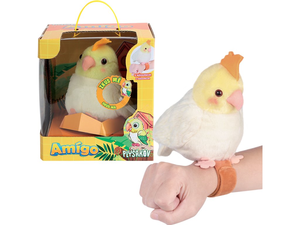 Seznamte se s papouškem Amígo – plyšovým kamarádem, který vydává veselé zvuky a umí nahrávat, co mu řeknete! Amígo se prodává spolu s náramkem, a je ideální pro děti, které milují interaktivní a zvukové hračky.