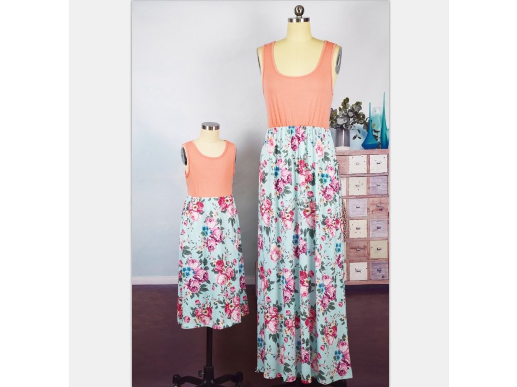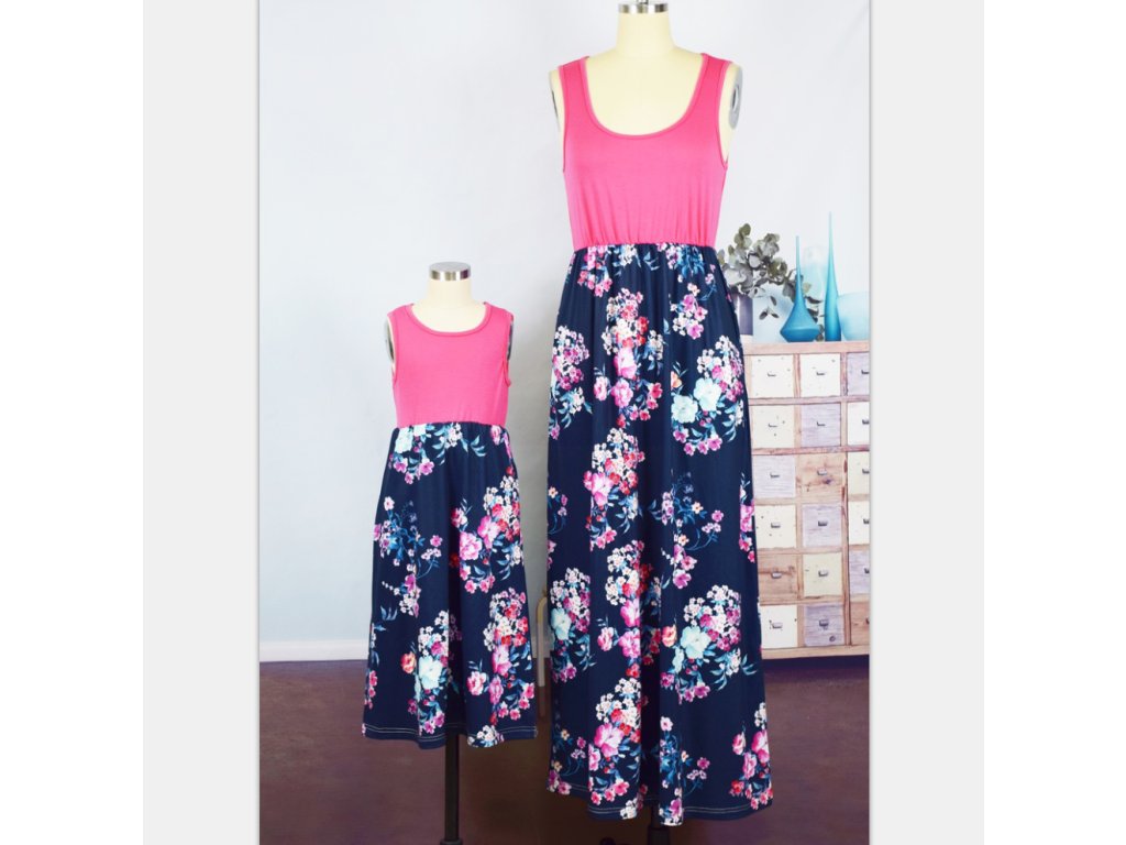 Dlouhé květinové šaty pro mámu a dceru (body 9-12 měsíců)