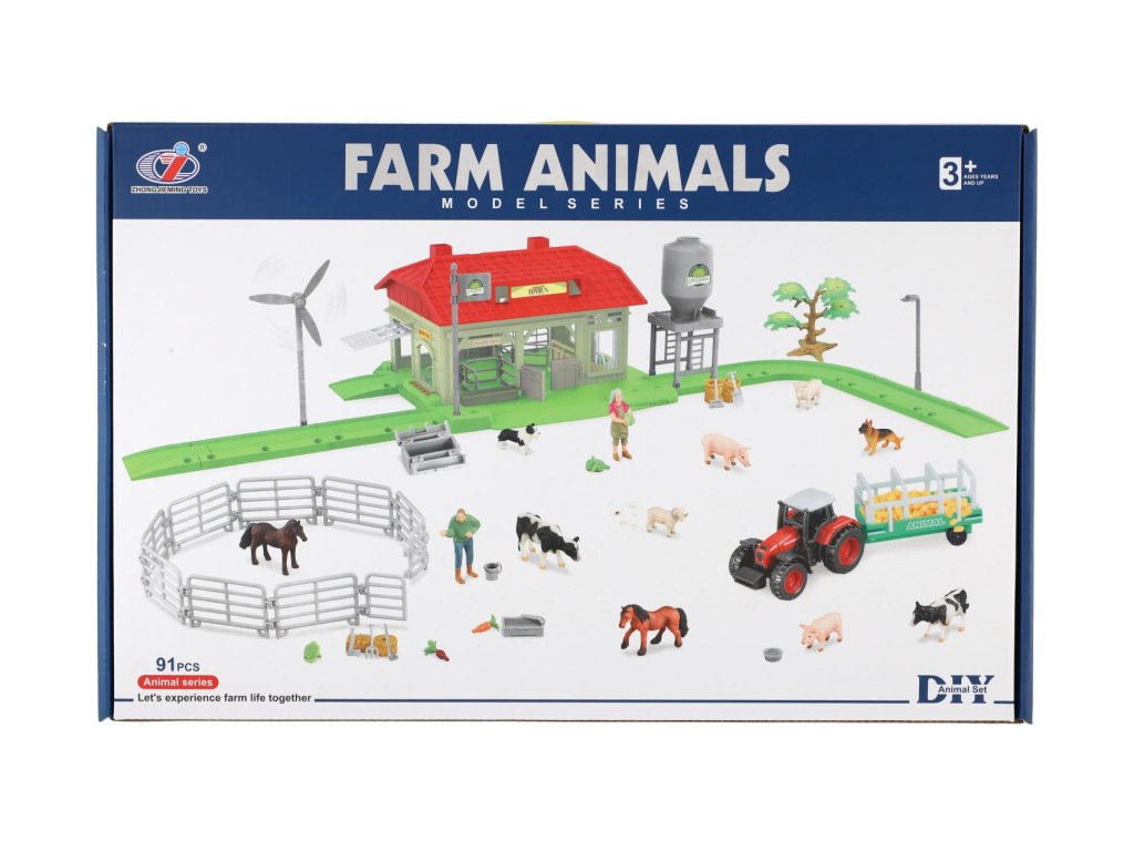 Sada domácí farma se zvířaty a traktorem plast s doplňky v krabici 48x31x9cm