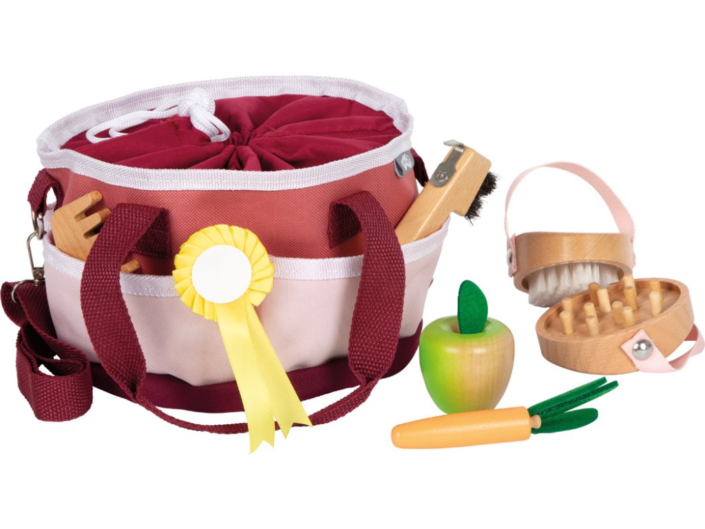 Pomůcky na čištění koní jsou dokonale přizpůsobeny potřebám mladých fanoušků koní, takže mladí jezdci mohou při hře popustit uzdu své fantazii. Pohodlná stahovací šňůrka umožňuje tašku doširoka otevřít, ale také úplně zavřít. Tuto tašku pro děti lze nosit za obě uši nebo nastavitelný ramenní popruh. S touto sadou péče se mohou děti starat o svého oblíbeného koně stejně jako profesionálové.