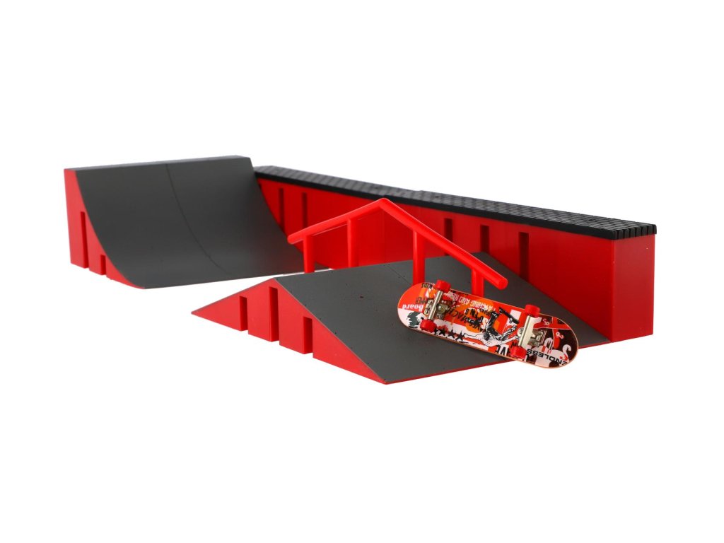 Skatepark s realistickou rampou a prstovým skateboardem, který bude ideální pro tvůj trénink koordinace prstů, což přispěje k praktickému zkoumání a představivosti. Každého sportovního nadšence adrenalinu tento set jistě potěší.Rozměr balení: 44 x 10 x 18 cm