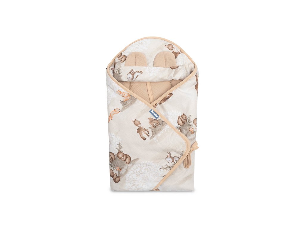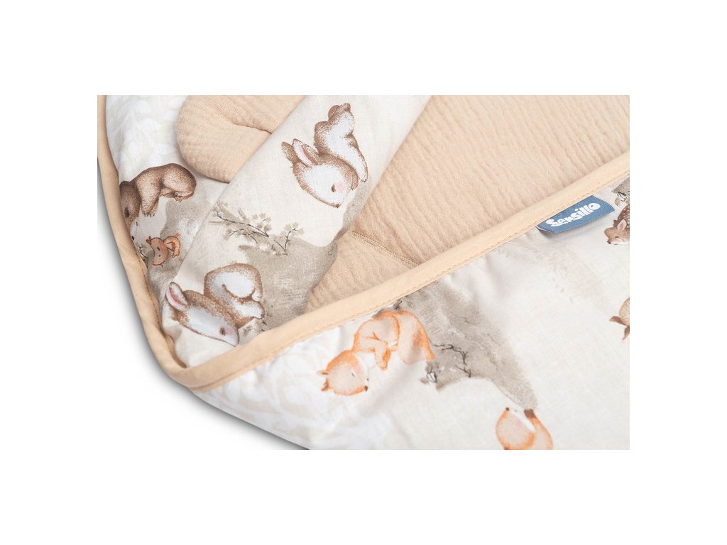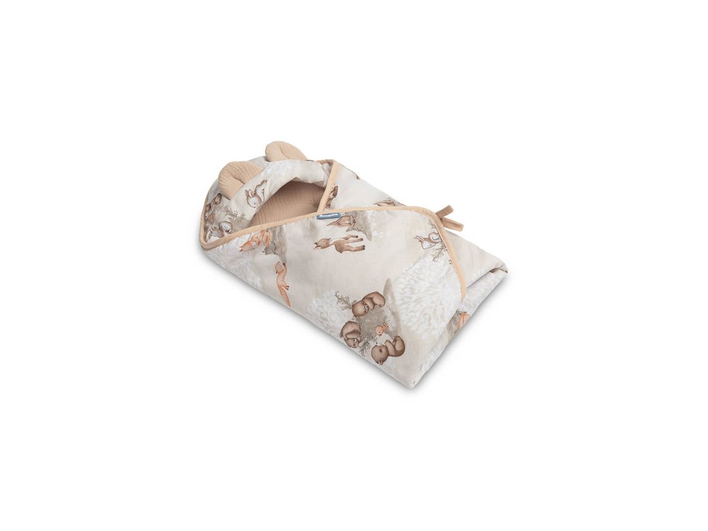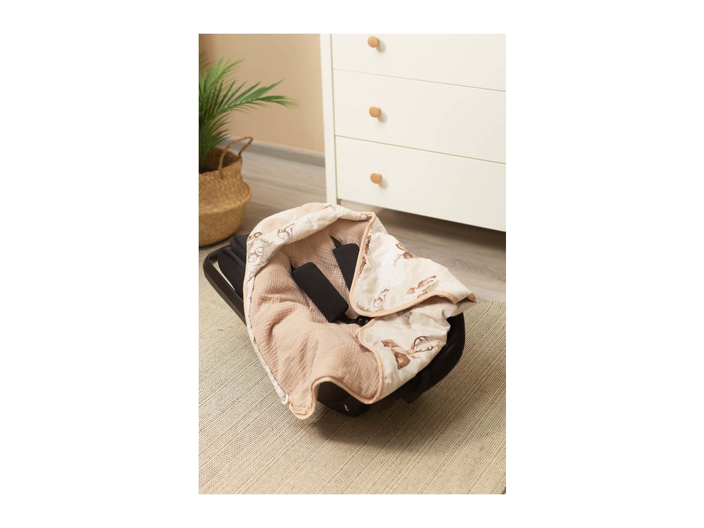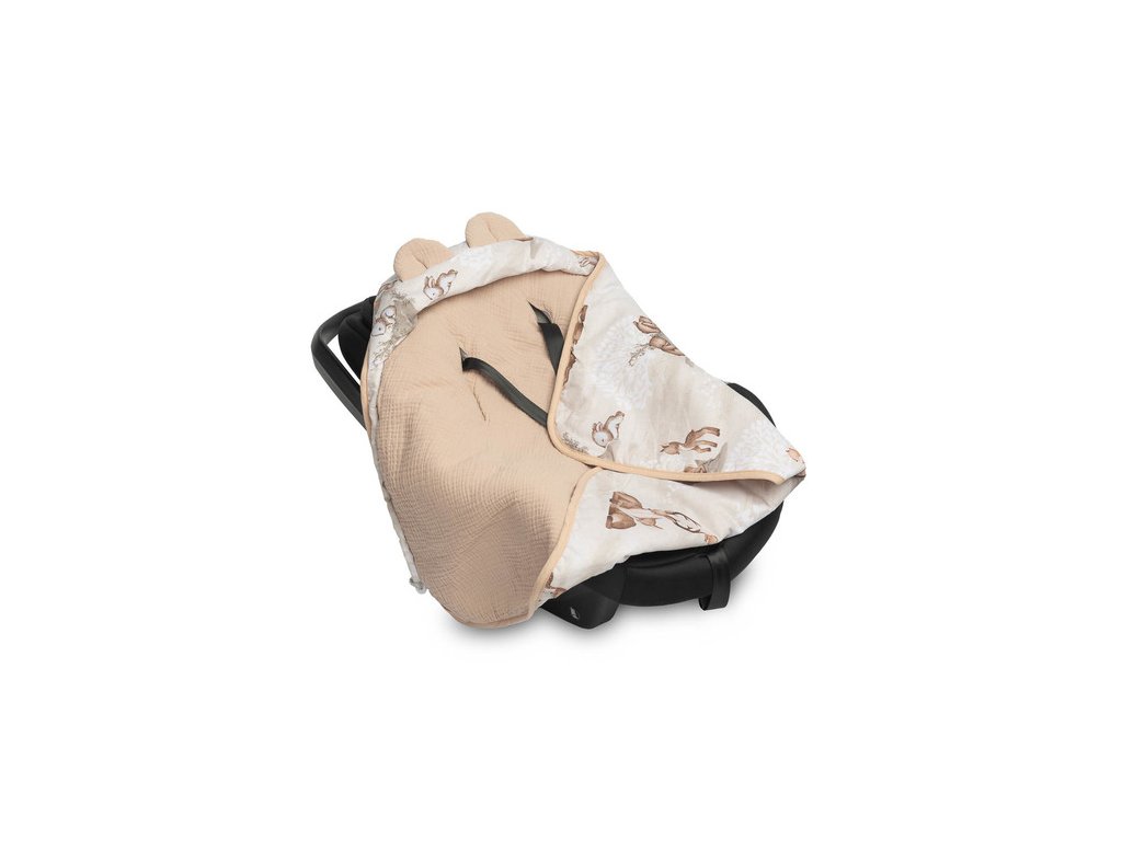 Zavinovačka 2v1 do autosedačky, kočárku, mušelín, bavlna - Zábava v lese, béžová