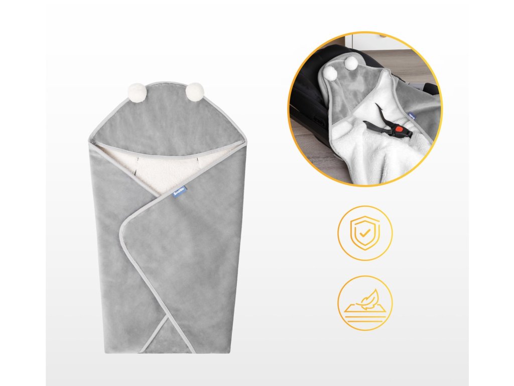 Zavinovačka do autosedačky – komfort a bezpečí pro Vaše miminko.Dopřejte svému děťátku maximální pohodlí a bezpečí při každé cestě. Zavinovačka do autosedačky z měkkého plyše jemně obepne miminko, poskytne mu teplo a ochranu a zároveň nebrání správnému připoutání do autosedačky nebo kočárku. Je to ideální kombinace komfortu, bezpečnosti a praktičnosti pro každou rodinu na cestách.