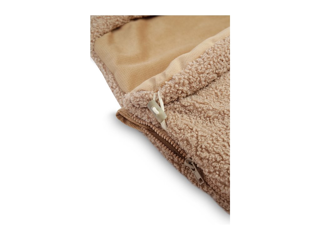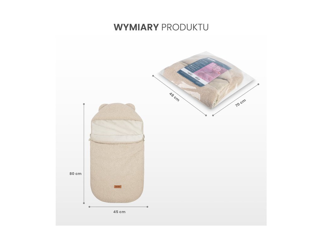 Výroba v EU je zárukou nejvyšší kvality. Spací pytel je vyroben z certifikovaných materiálů šetrných k citlivé pokožce dítěte. Vnitřní část tvoří jemný velvet, který je měkký a příjemný na dotek. Vnější vrstva z tkaniny bouclé chrání proti chladu a větru a zároveň zaujme svým elegantním, nadýchaným vzhledem.