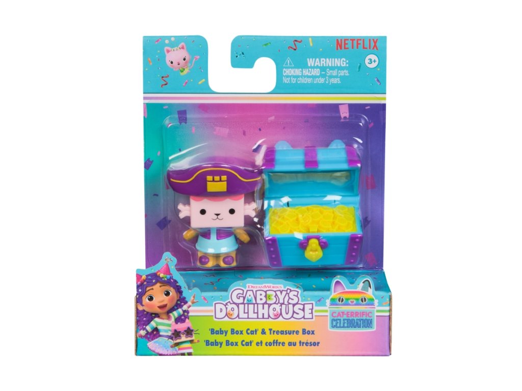 Vstupte do světa Gábinina kouzelného domku s kočičkou Krabičkou a její kočičí truhlou s pokladem! Obsahuje pěticentimetrovou figurku kočičky Krabičky, oblečenou v jejím roztomiloučkém pirátském kostýmu a truhlu s pokladem se zamykacím víkem! Pro další kočičí dobrodružství, hledejte sady Pandy Ťapky a jeho raketová loď, Rybočka a její lázeňské křeslo, Dortě a jeho mixér na dorty, DJ Koucour a jeho violoncello nebo Víla kočička s jejím tančícím kaktusem! (prodávají se zvlášť) Gábinin kouzelný domek je hračka pro dívky a chlapce vhodná jako dárek pro děti, které jsou fanoušky hitu Netflix seriálu a rádi staví předstírané hraní panenky světy. Zajistěte jim nezapomenutelný zážitek se světem roztomilých figurek, doplňků a nábytku do kouzelného domku, které mohou sbírat a libovolně skládat! Postavte si vlastní svět se základními stavebnicemi, jako je kuchyňka na hraní nebo hudební místnost, a spoustou sběratelských předmětů, jako je úžasná výletní loď, bazén pro mořské panny nebo zbrusu nová souprava Párty pokoj – podkroví kouzelného domku s krytým skateparkem a roztomiloučkými balkónky s mini antistresovými hračkami, které poskytují uspokojivou senzorickou hru a lze je bezproblémově zkombinovat s oběma verzemi kouzelného domku!