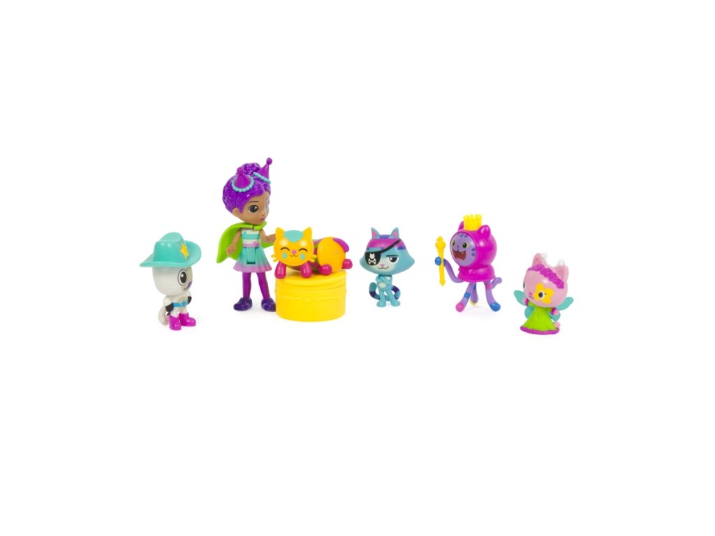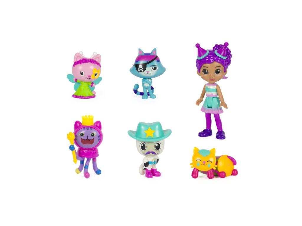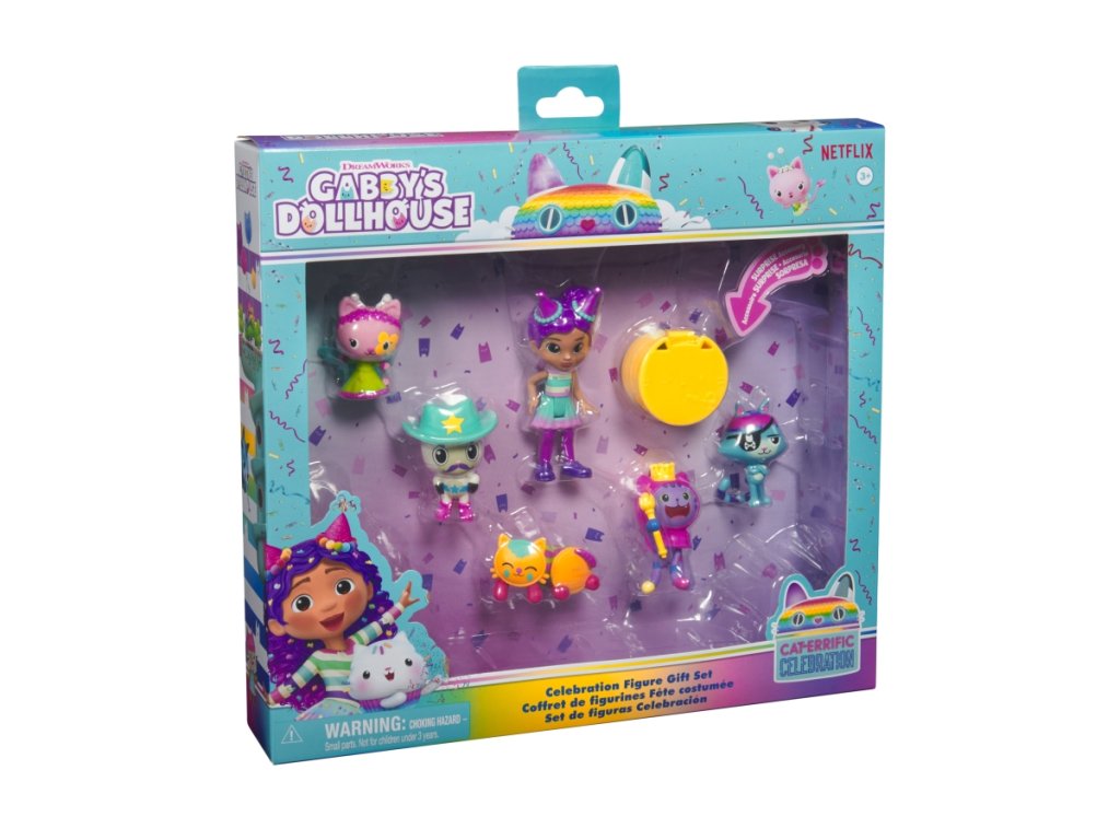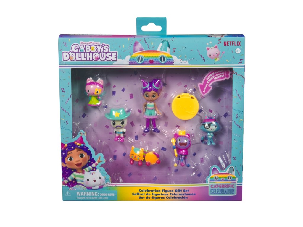 Vkročte do kouzelného světa Gábinina kouzelného domku s dárkovou soupravou figurek Oslava! Tato exkluzivní souprava figurek obsahuje Gábi a její oblíbené kočičky Pandy Ťapku, DJ Kocoura, Krysoura, Válečku a Vílu Kočičku! Poté si rozbalte vlastní zásilku z kouzelného domku a odhalte překvapení v podobě nádherného pláště! A pro další překvapení si naskenujte QR kód, který je uvnitř krabičky s překvapením, a odemkněte si speciální odměnu v bezplatné aplikaci Gábinin kouzelný domek (k dispozici pro iOS a Android). Hračky Gábinin kouzelný domek pro dívky a chlapce jsou skvělými dárky pro všechny děti, které jsou fanoušky tohoto seriálového hitu od Netflixu a rádi si hrají s domečky pro panenky. Zajistěte jim nezapomenutelný zážitek se světem roztomilých figurek, doplňků a nábytku do kouzelného domku, které mohou sbírat a libovolně skládat! Postavte si vlastní svět se základními stavebnicemi, jako je kuchyňka na hraní nebo hudební místnost, a spoustou sběratelských předmětů, jako je úžasná výletní loď, mořskovílí bazén a zbrusu nová souprava Párty pokoj – podkroví kouzelného domku s krytým skateparkem a roztomiloučkými balkónky s mini hračkami. Poskytují uspokojivou senzorickou hru a lze je bezproblémově zkombinovat s oběma verzemi kouzelného domku!Doplňkové parametry